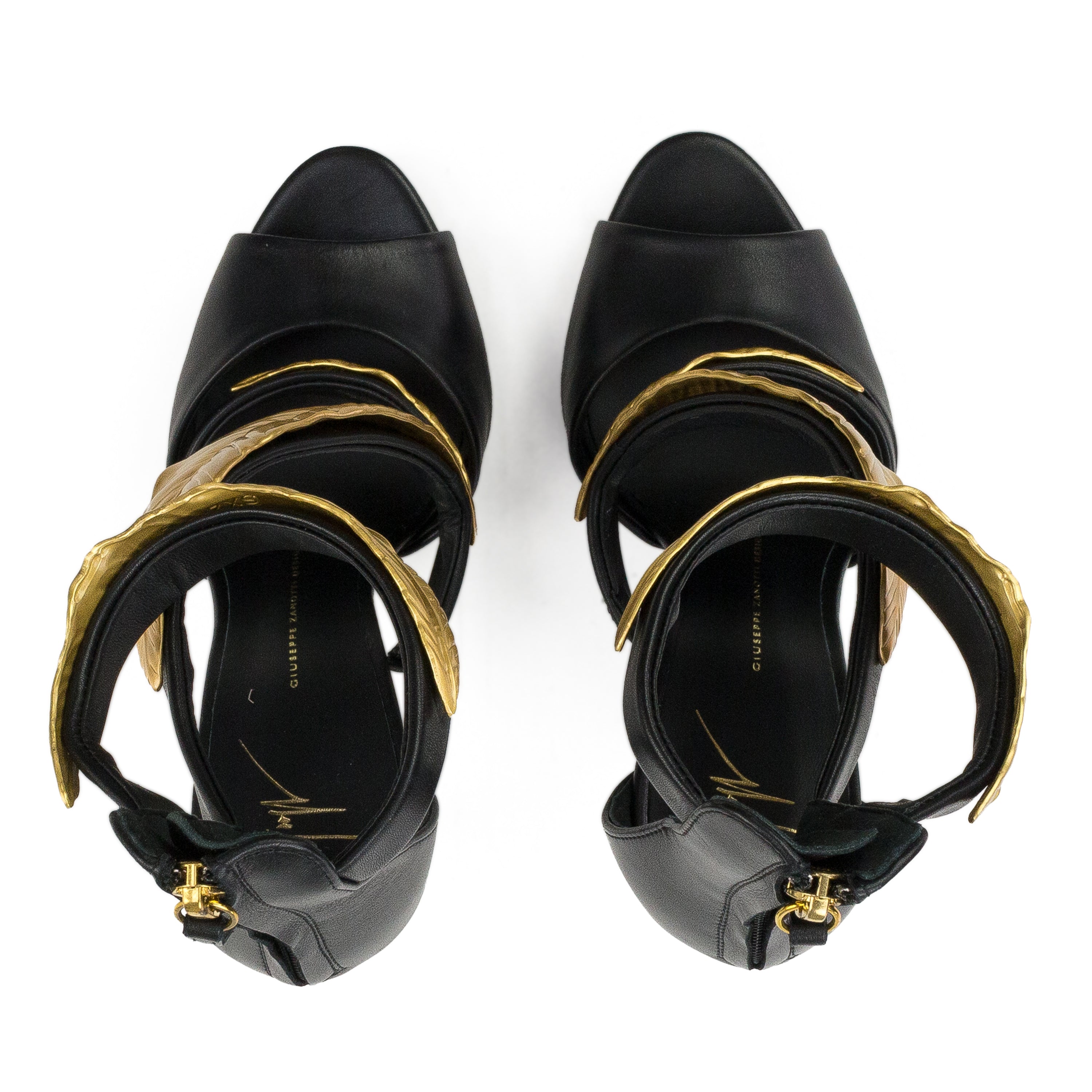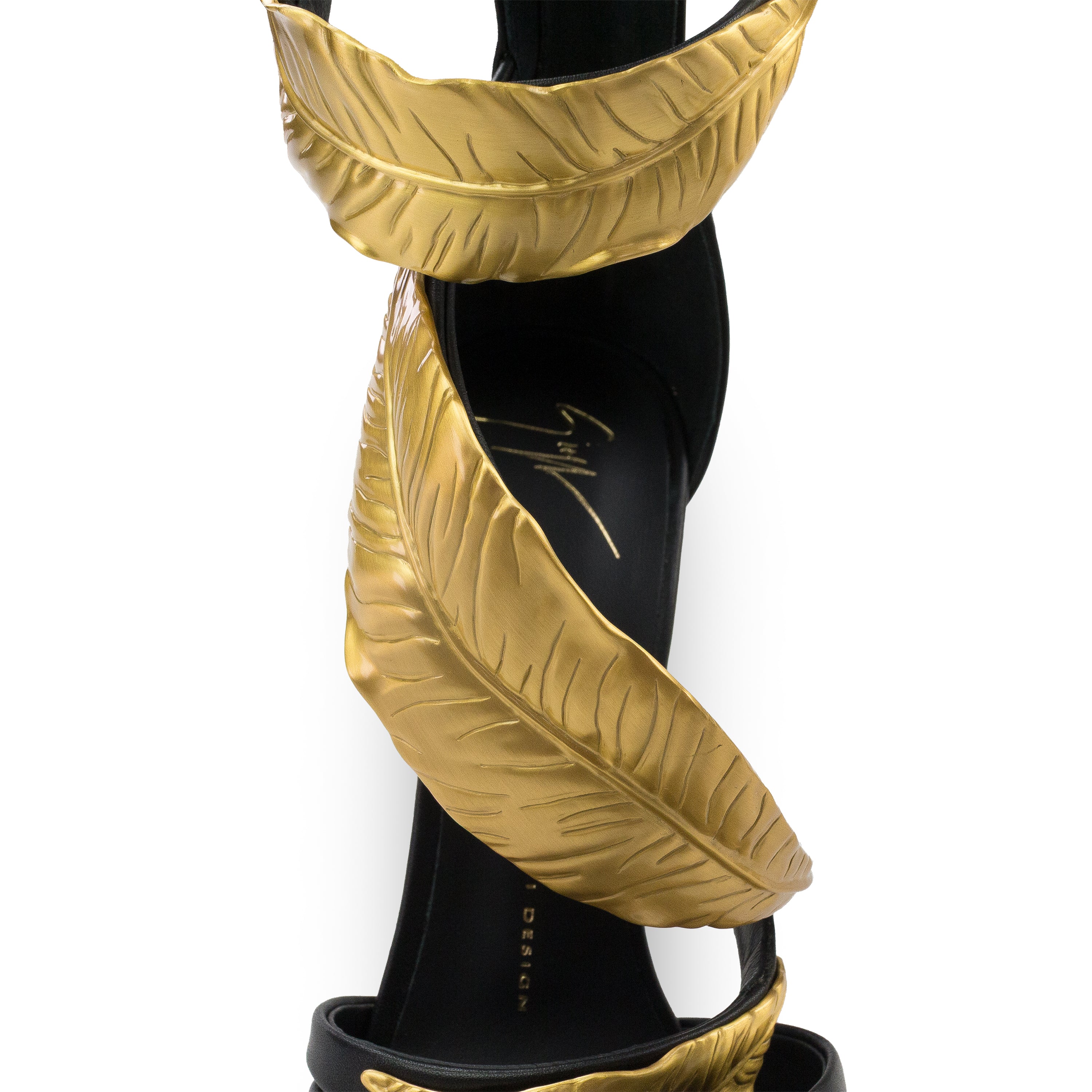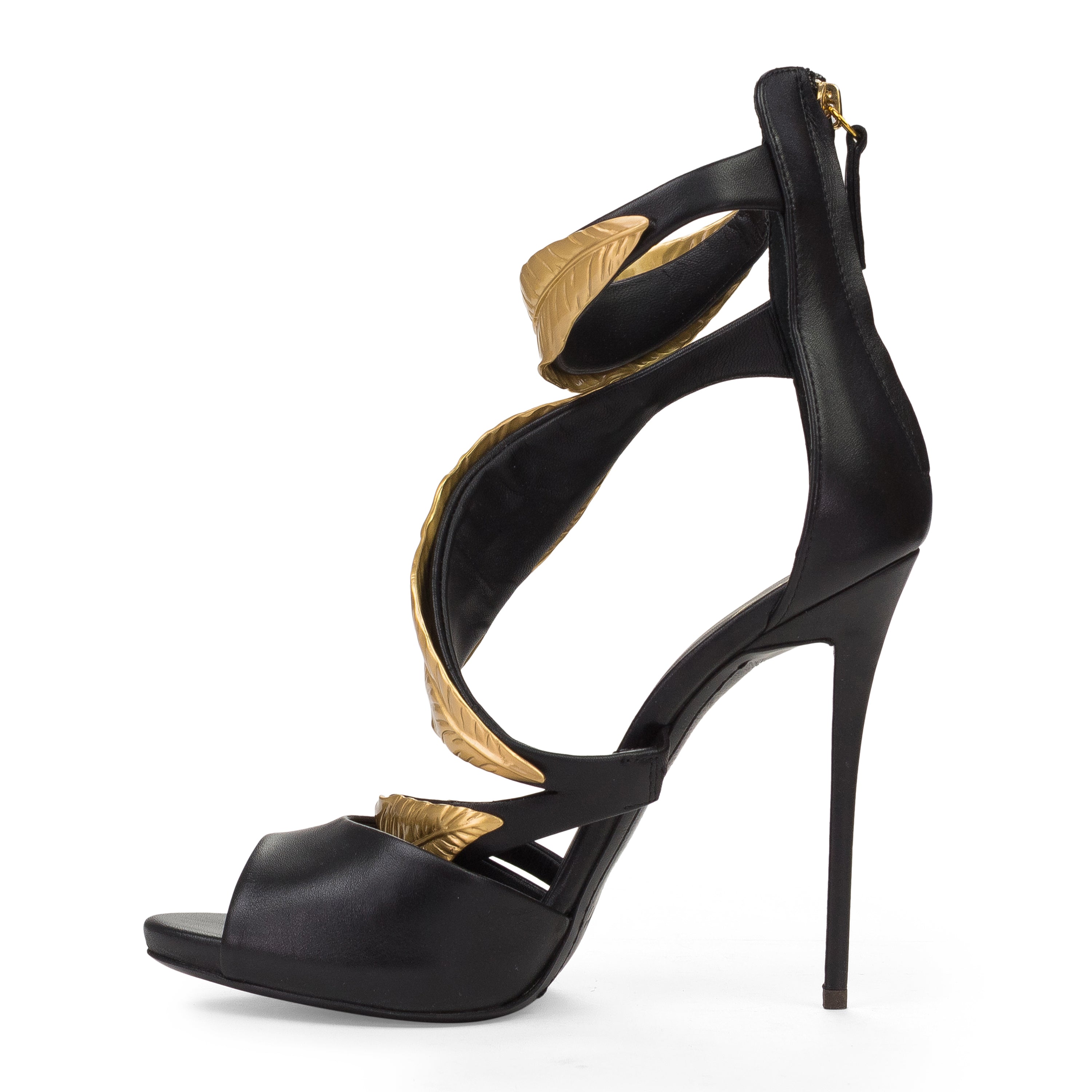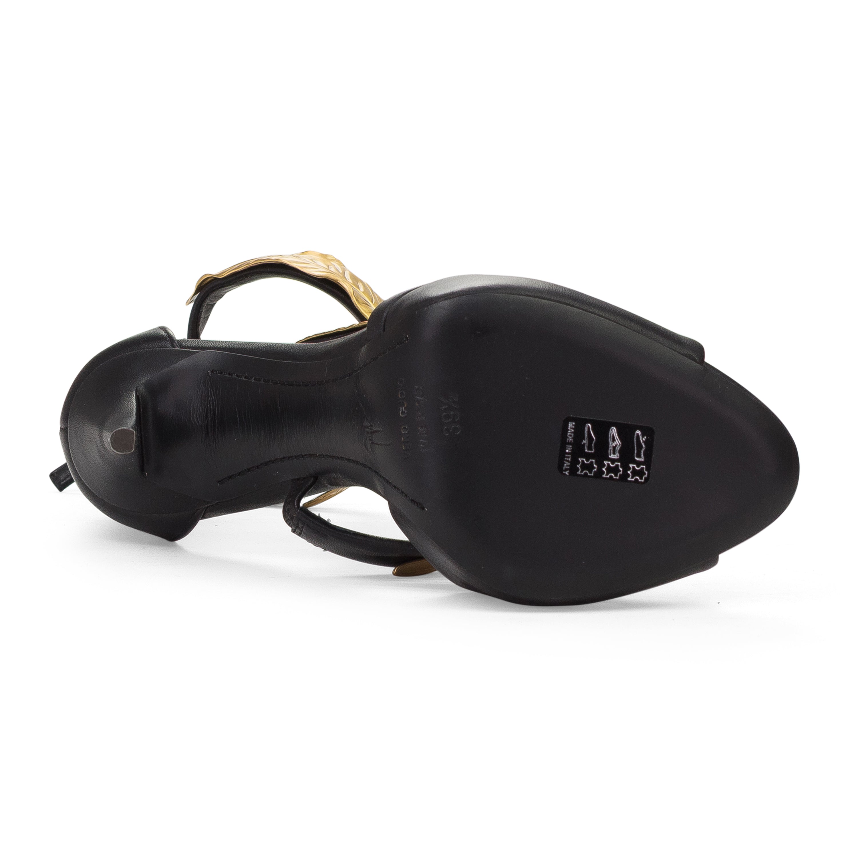 BLACK/GOLD LEAF STRAPS HEELS