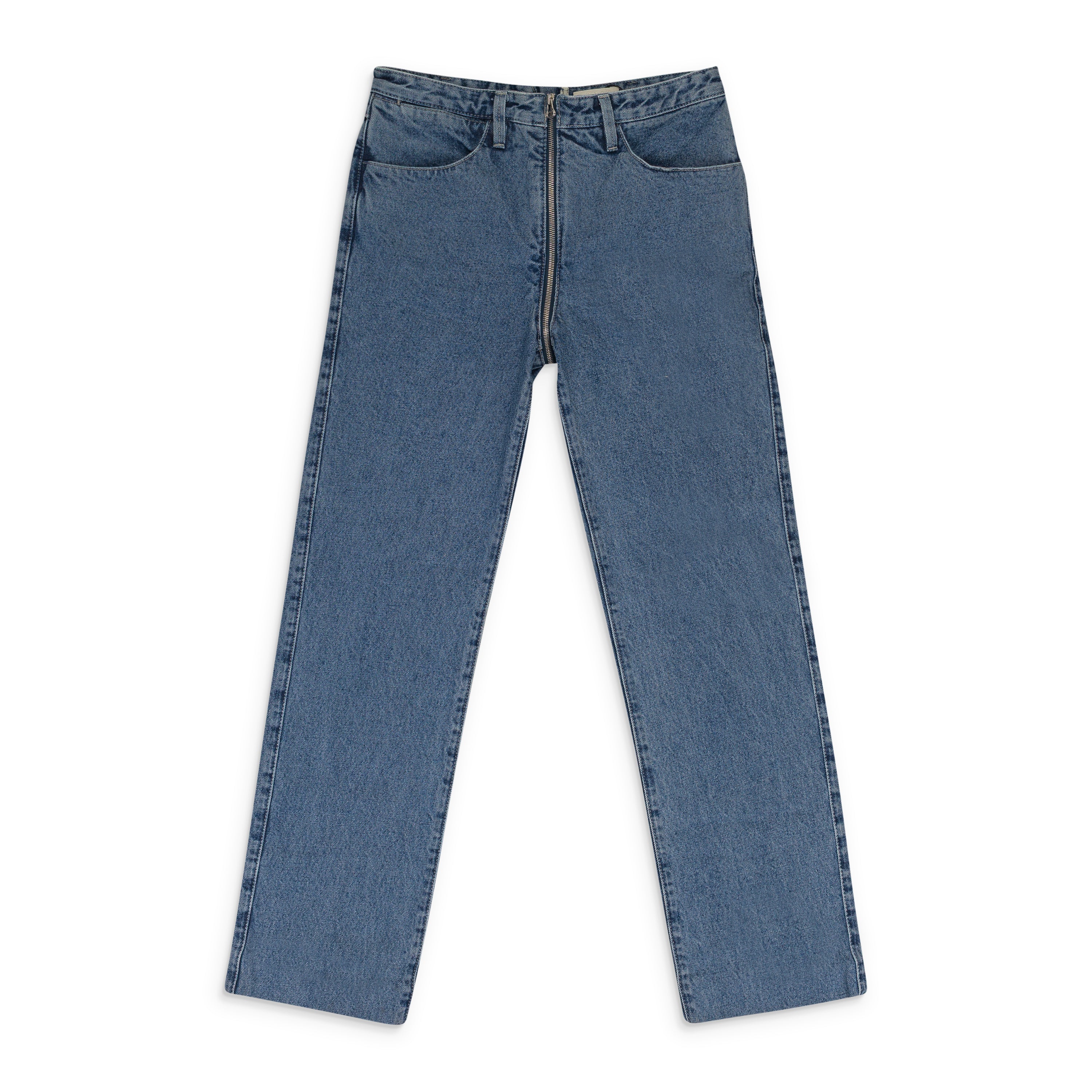BLUE ZIP THROUGH STRAIGHT-FIT JEANS
