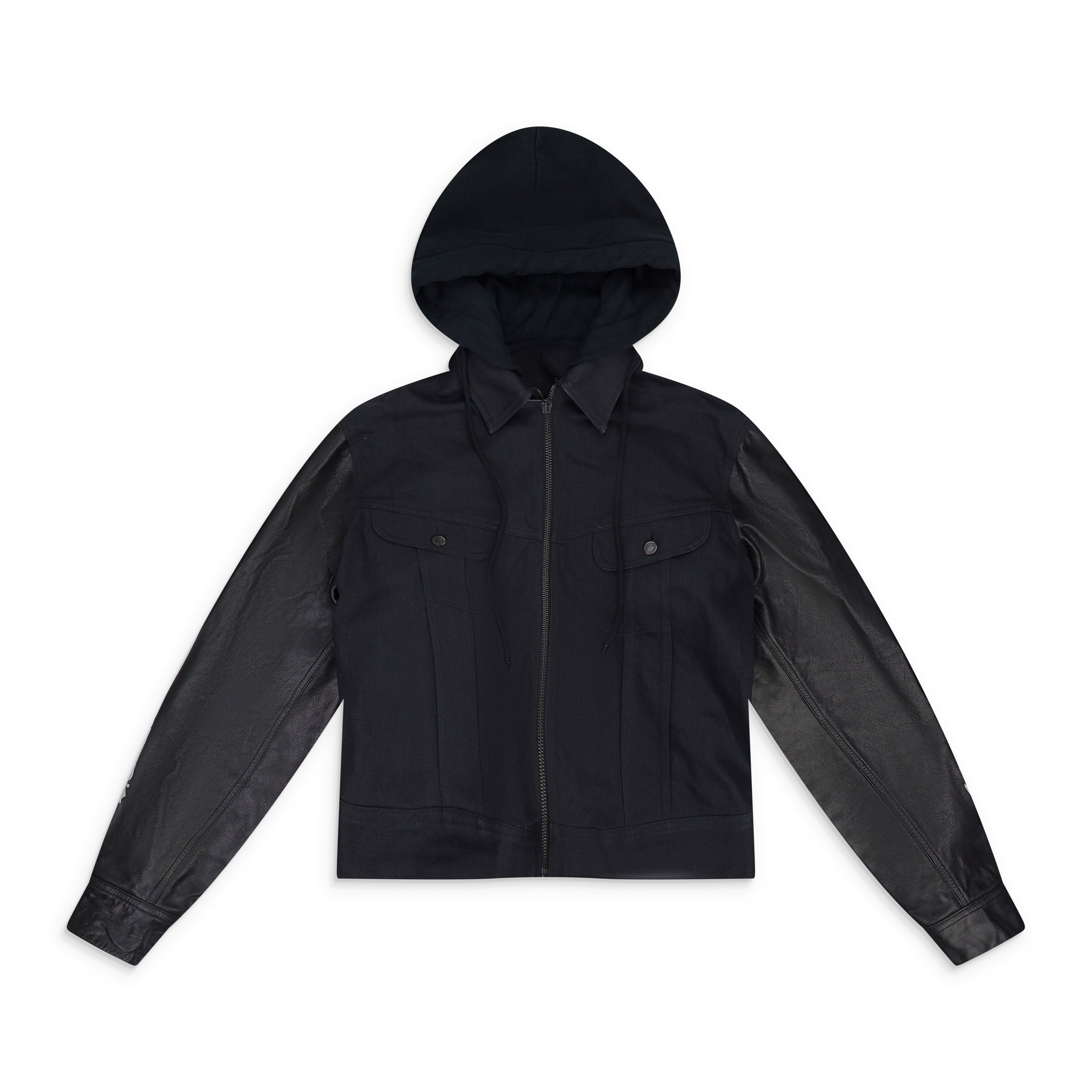 BLACK UNKNOWN CABAN WITH WHITE GRAPHIC DENIM JACKET