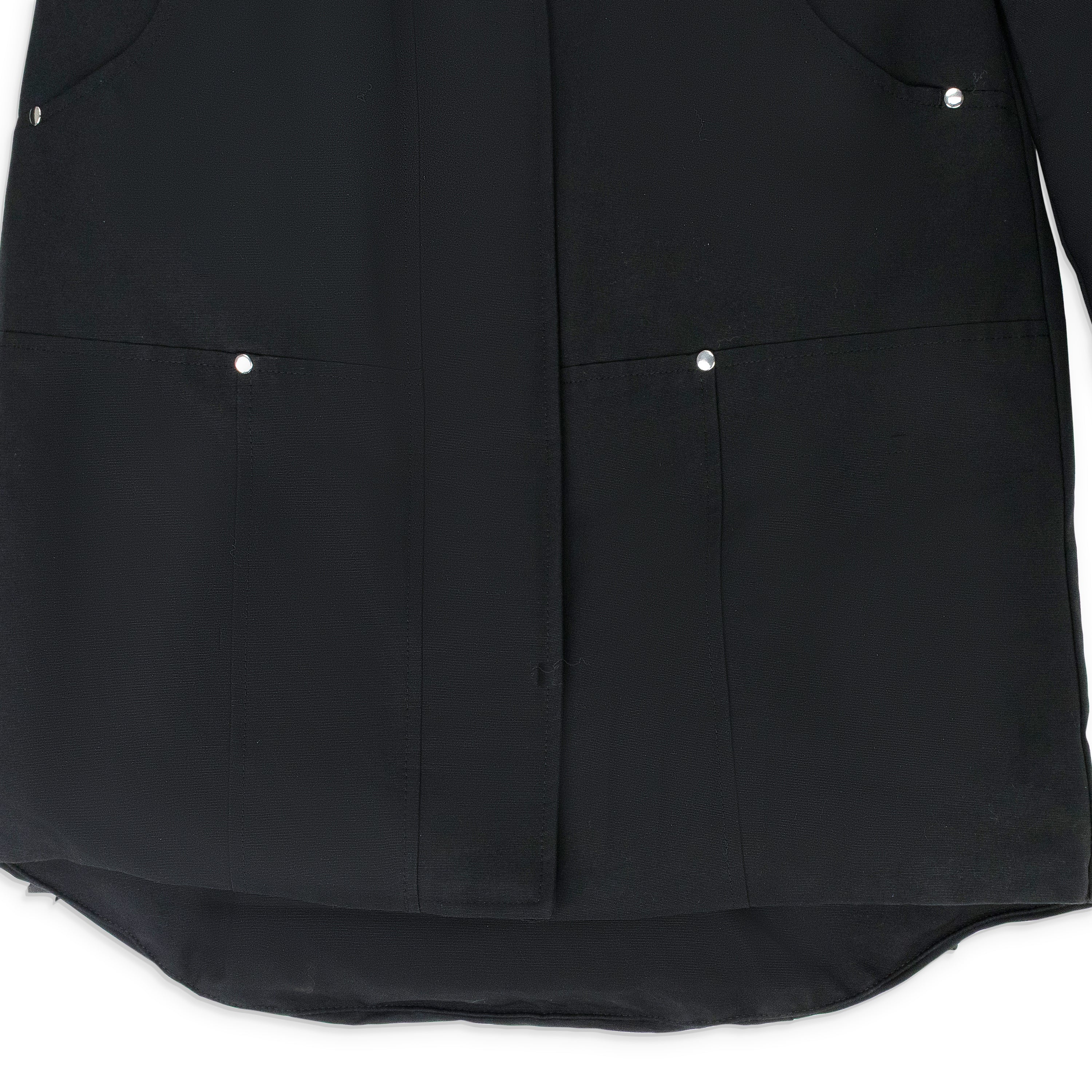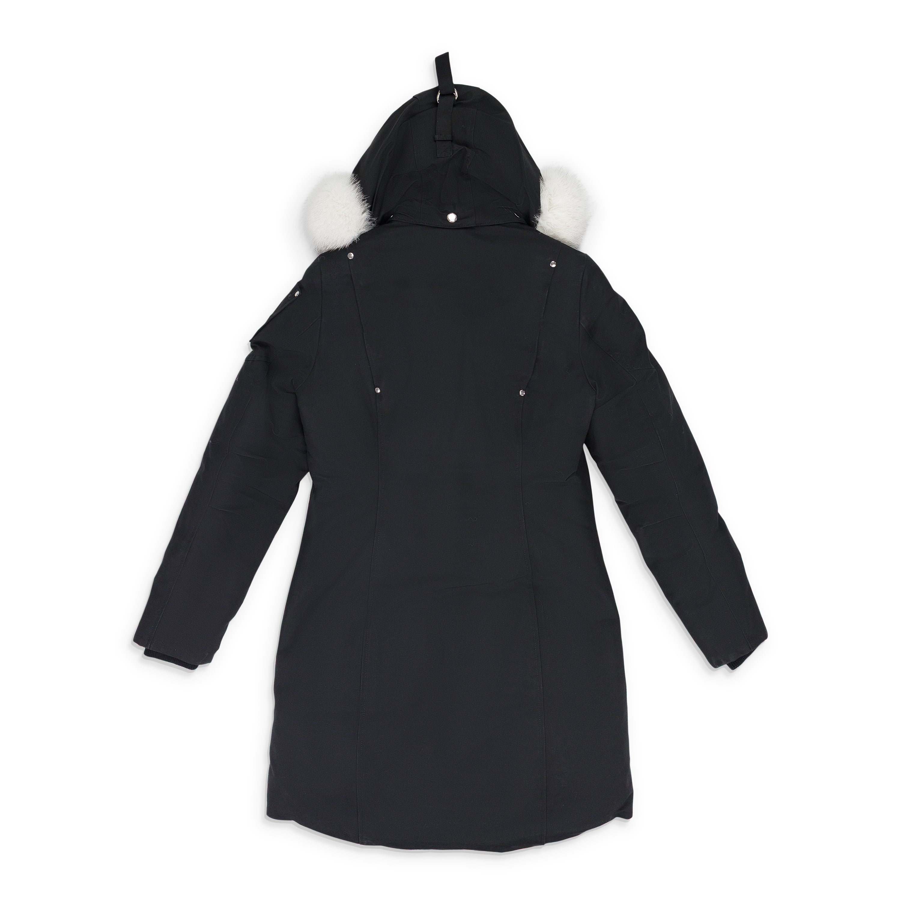 - Snap-off hood with fixed shearling trim