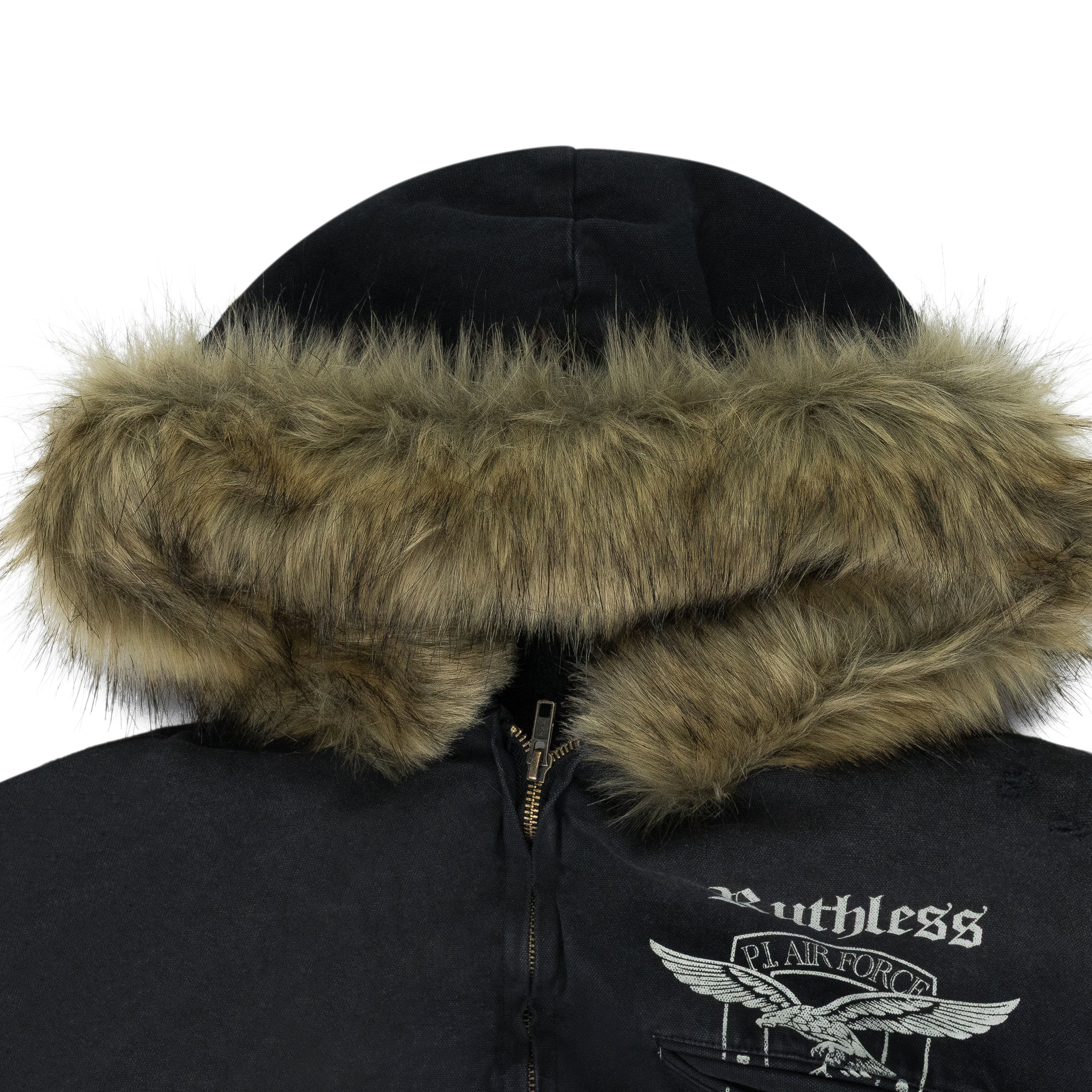 - Detachable fur trim