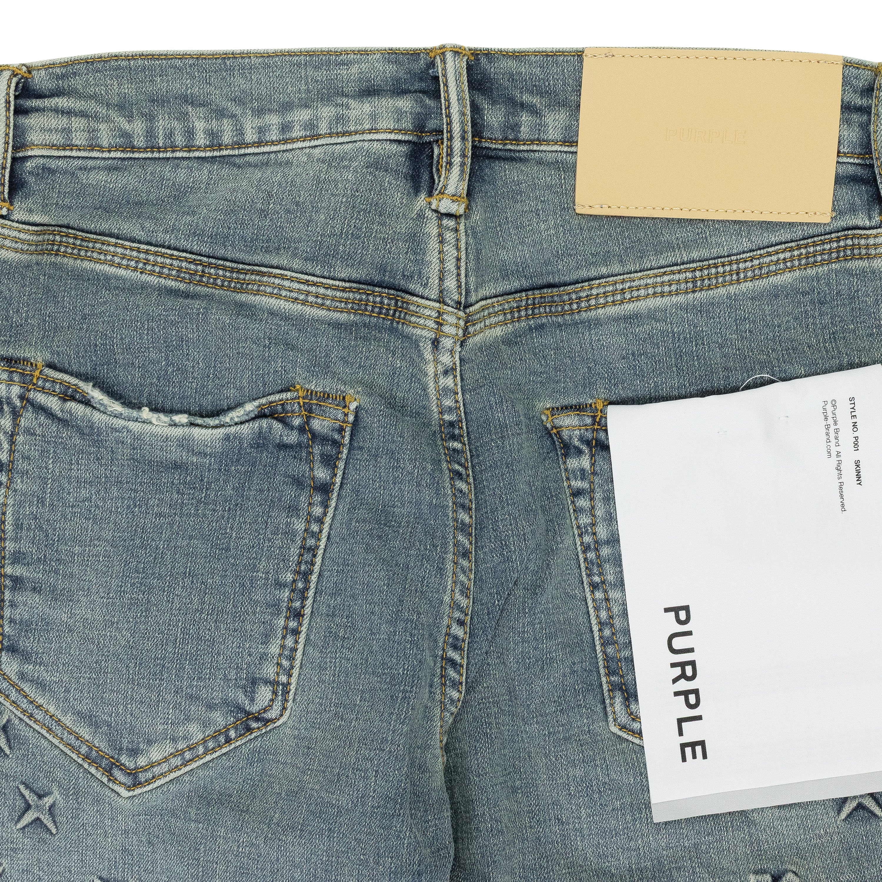 - Back pockets feature subtle bar-tack stitching and hidden rivets