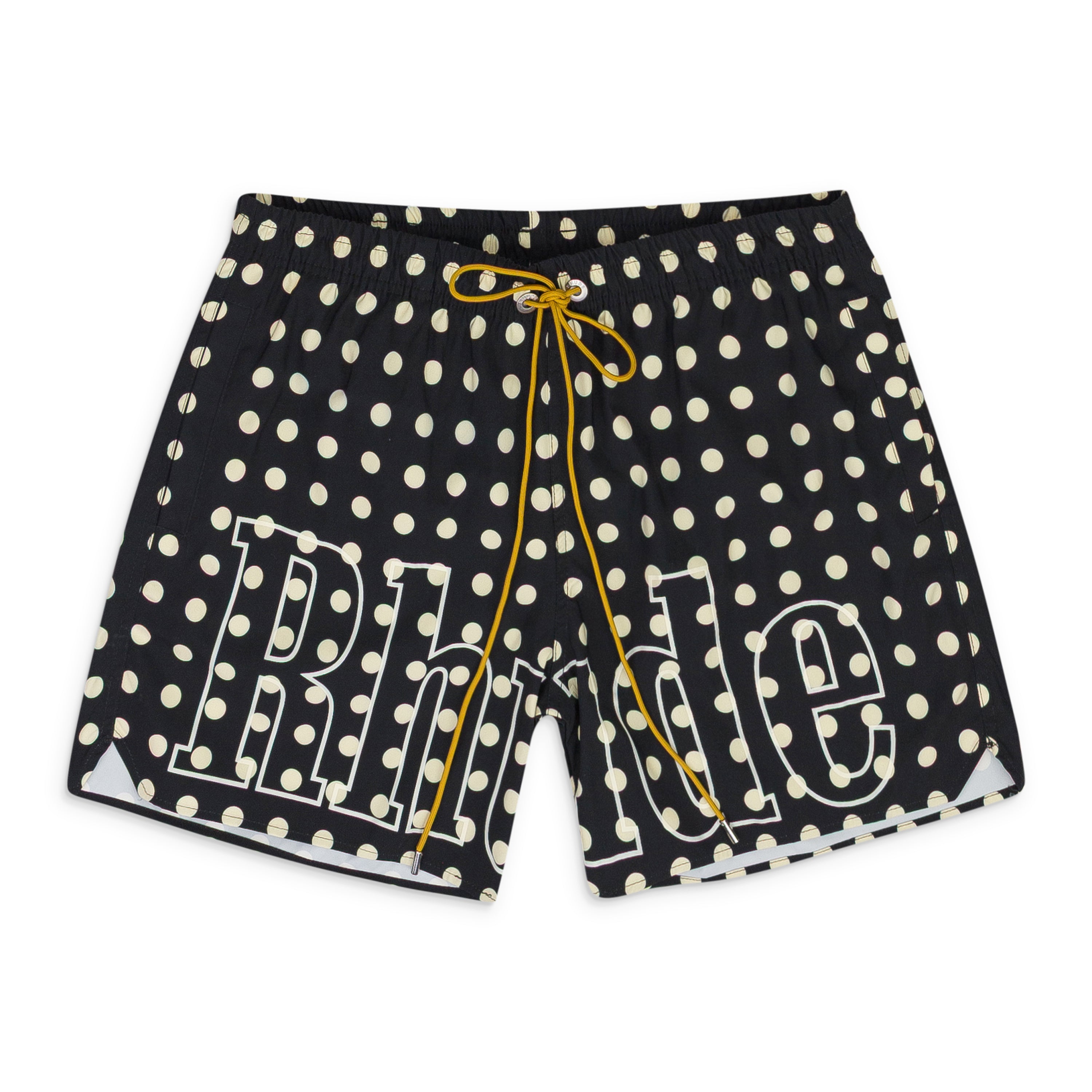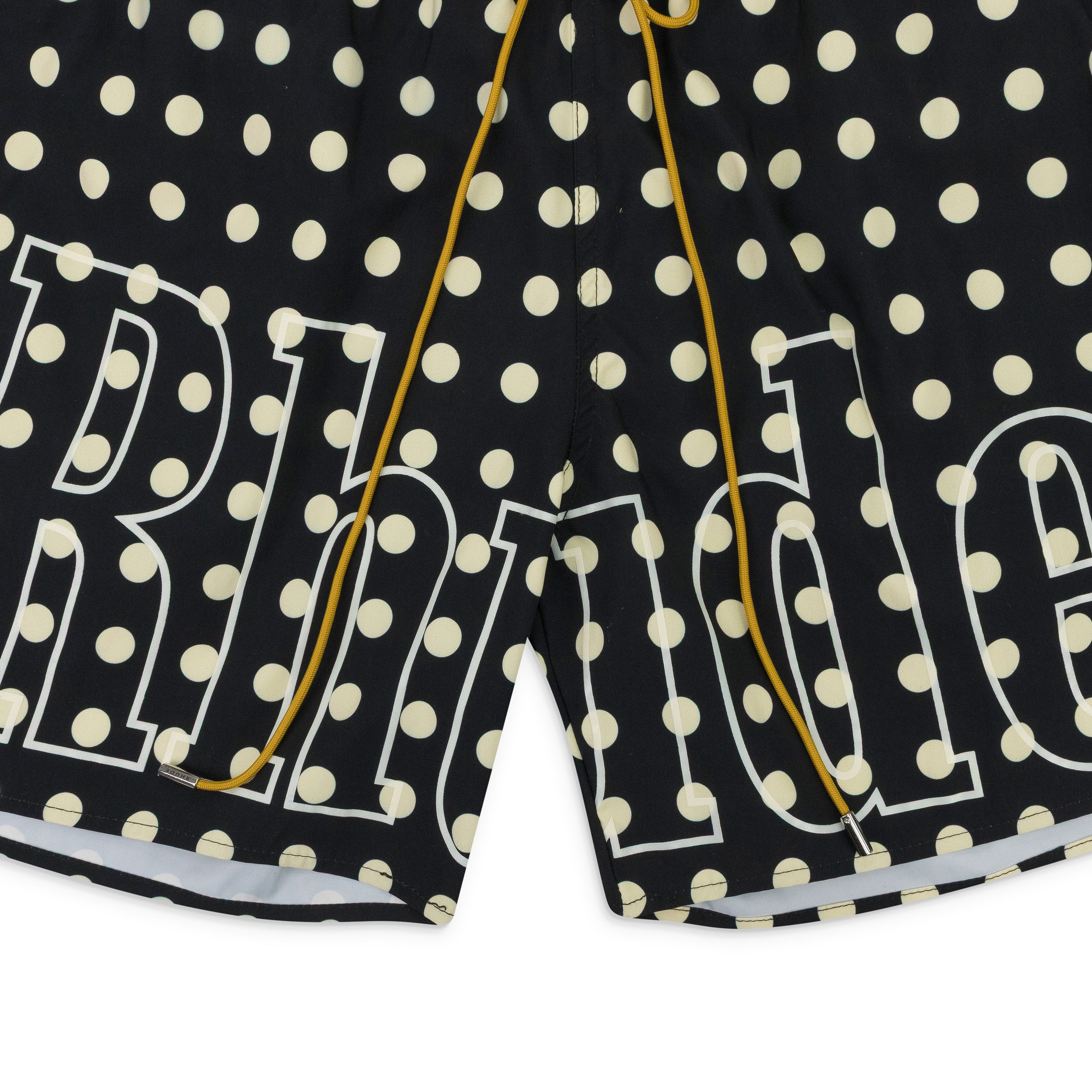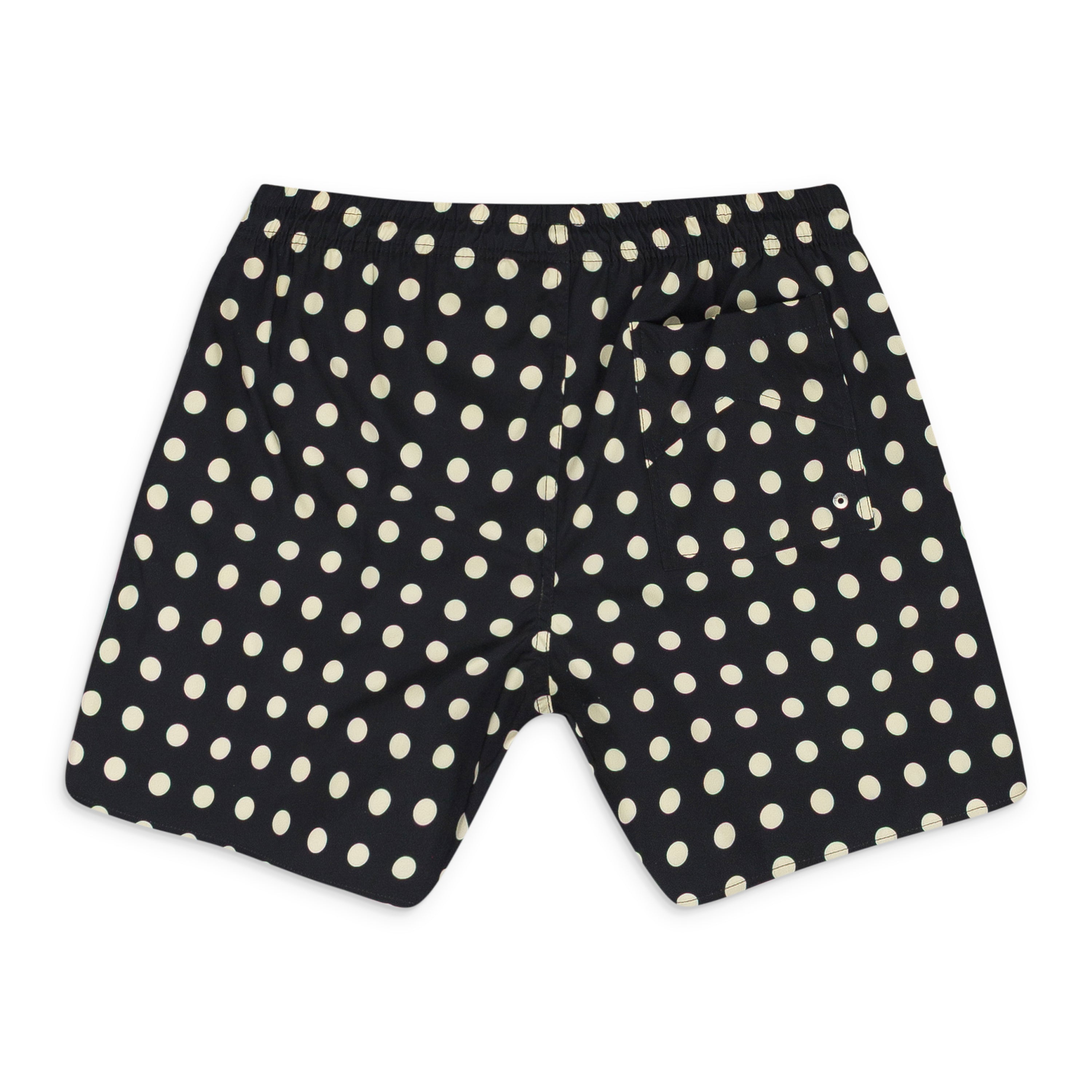 BLACK LOGO POLKA DOT SWIM TRUNKS