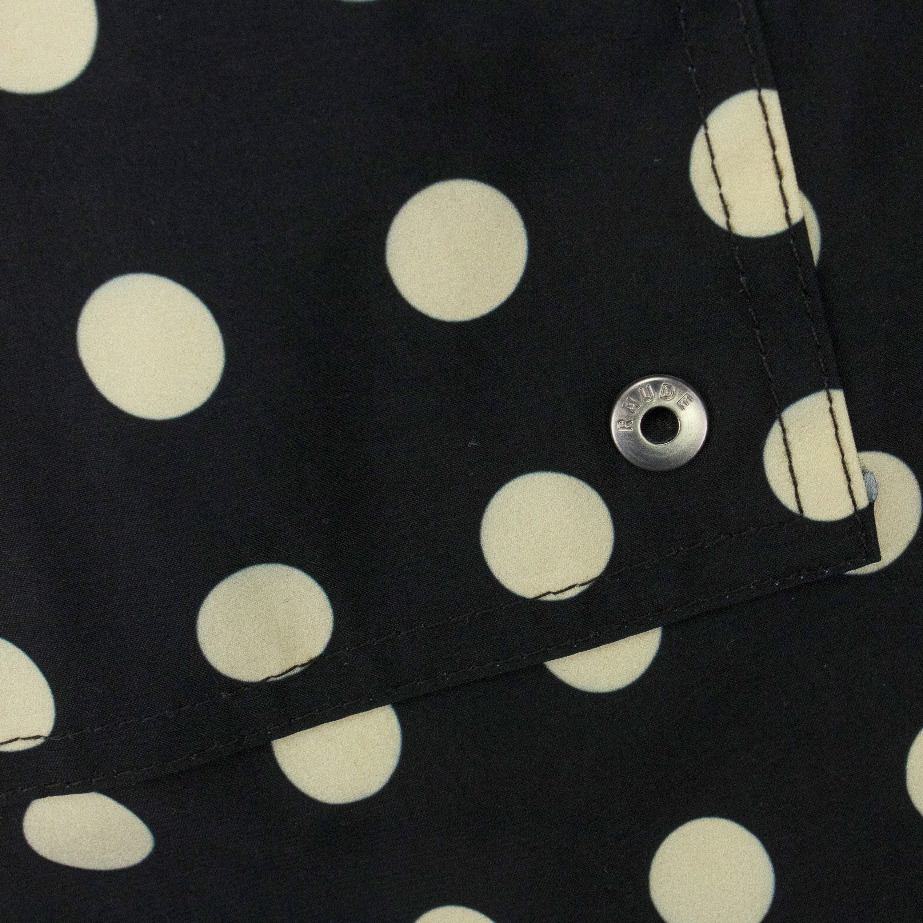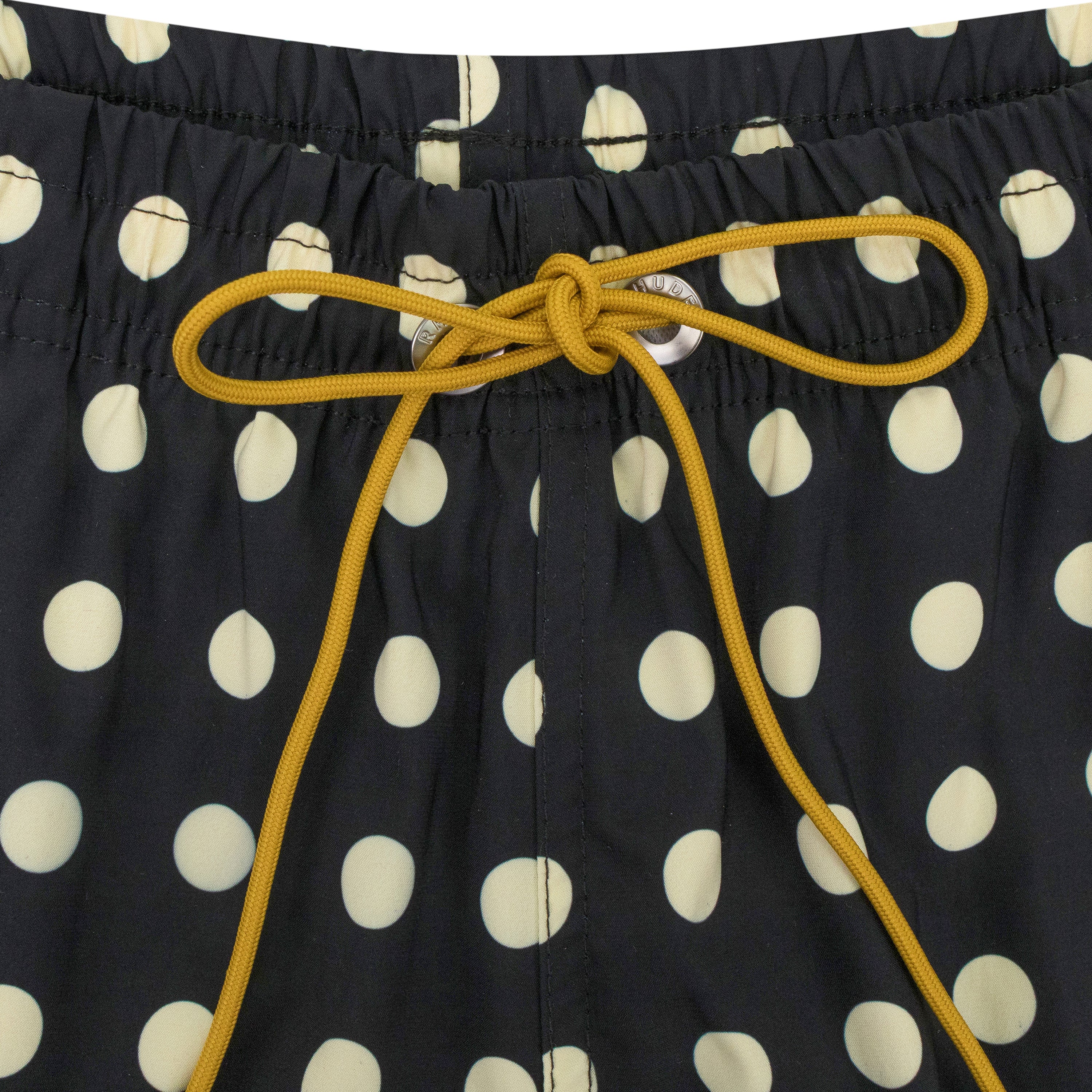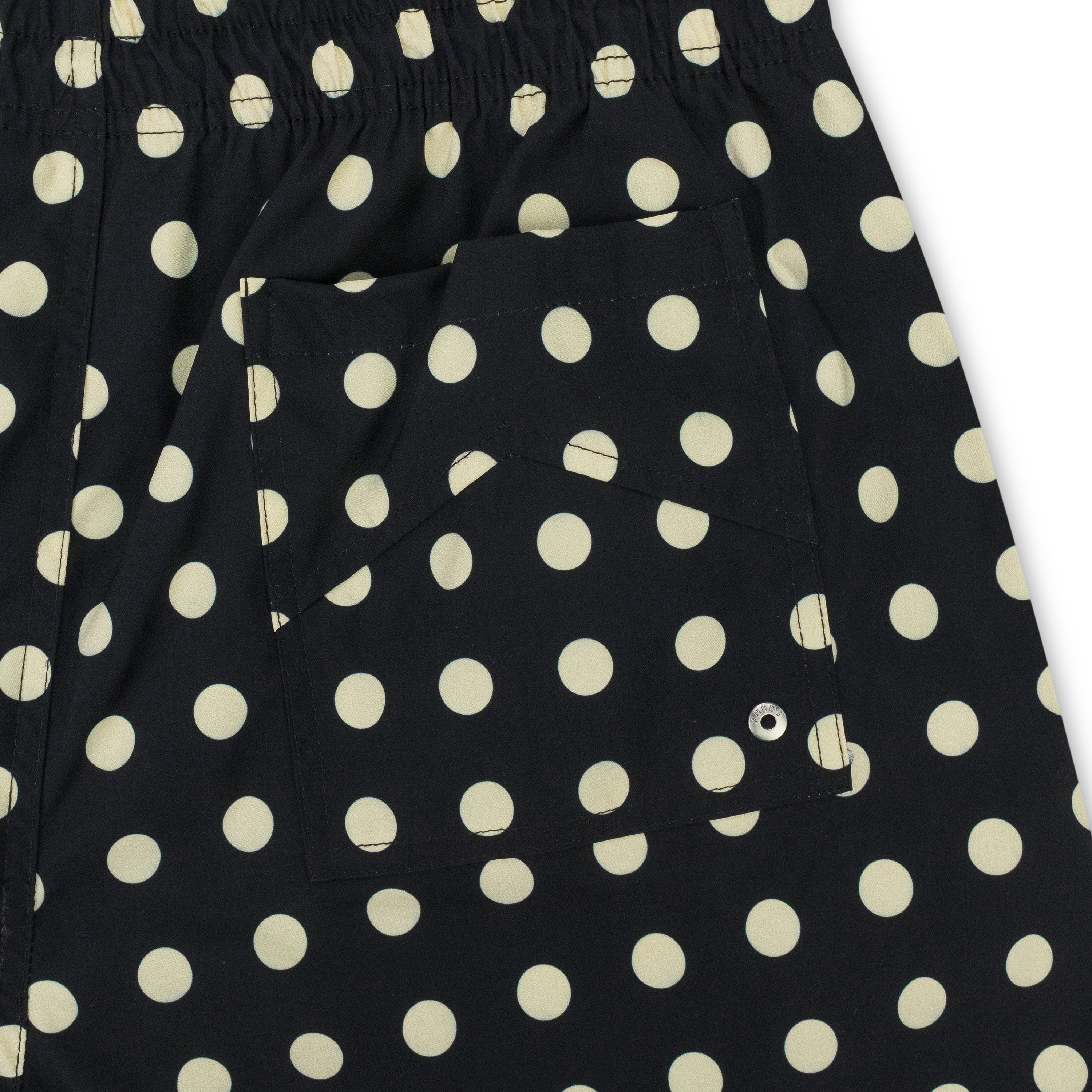 BLACK LOGO POLKA DOT SWIM TRUNKS