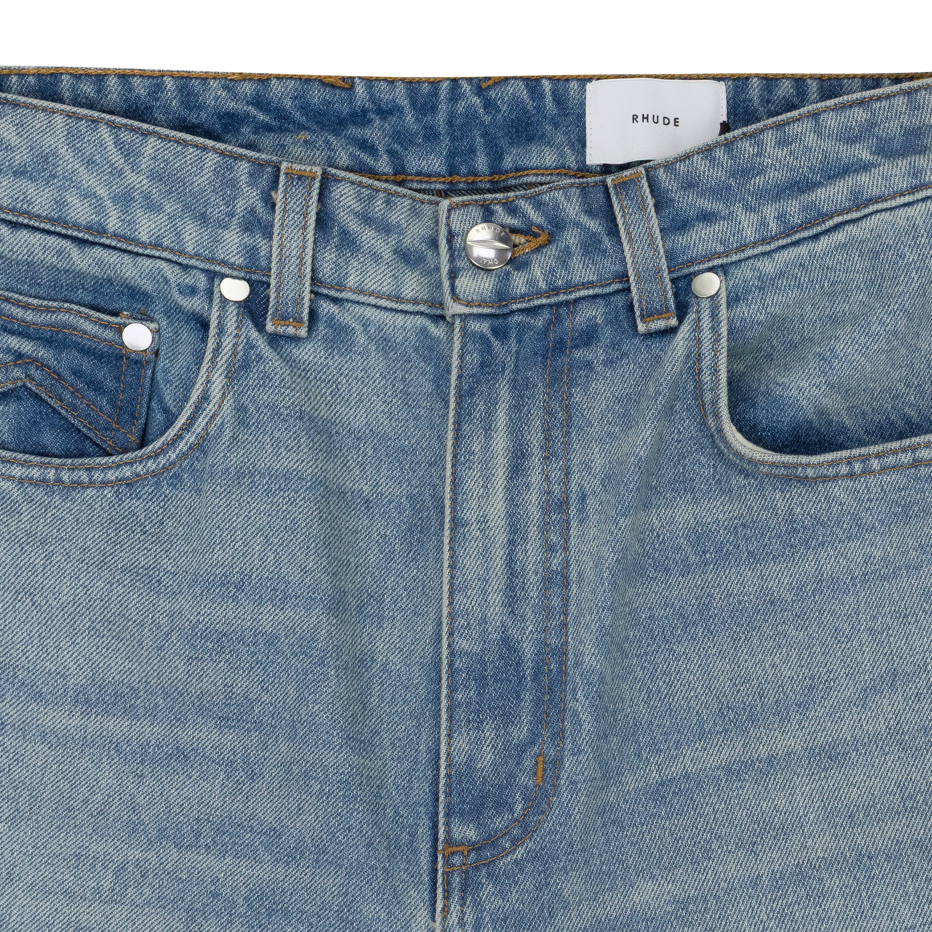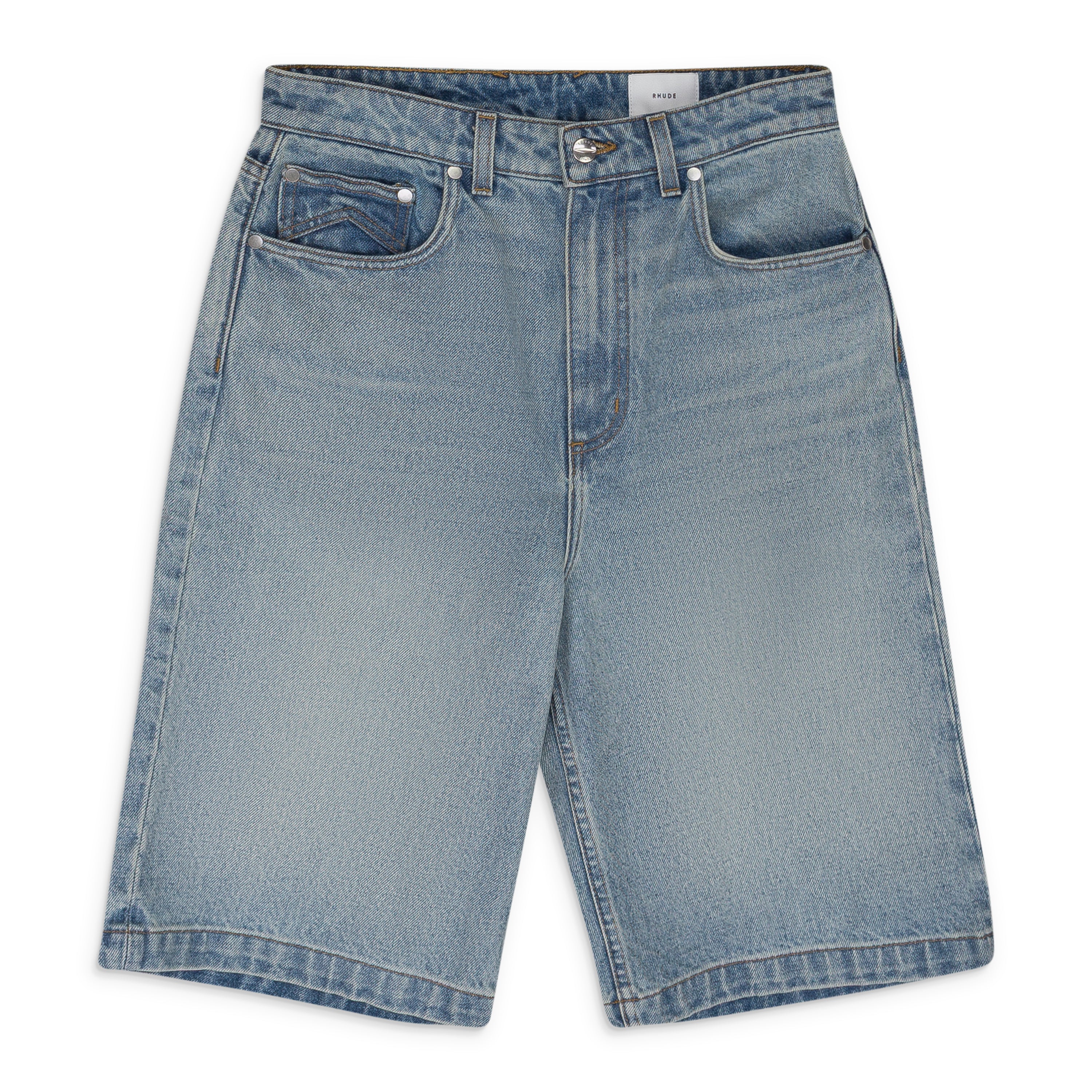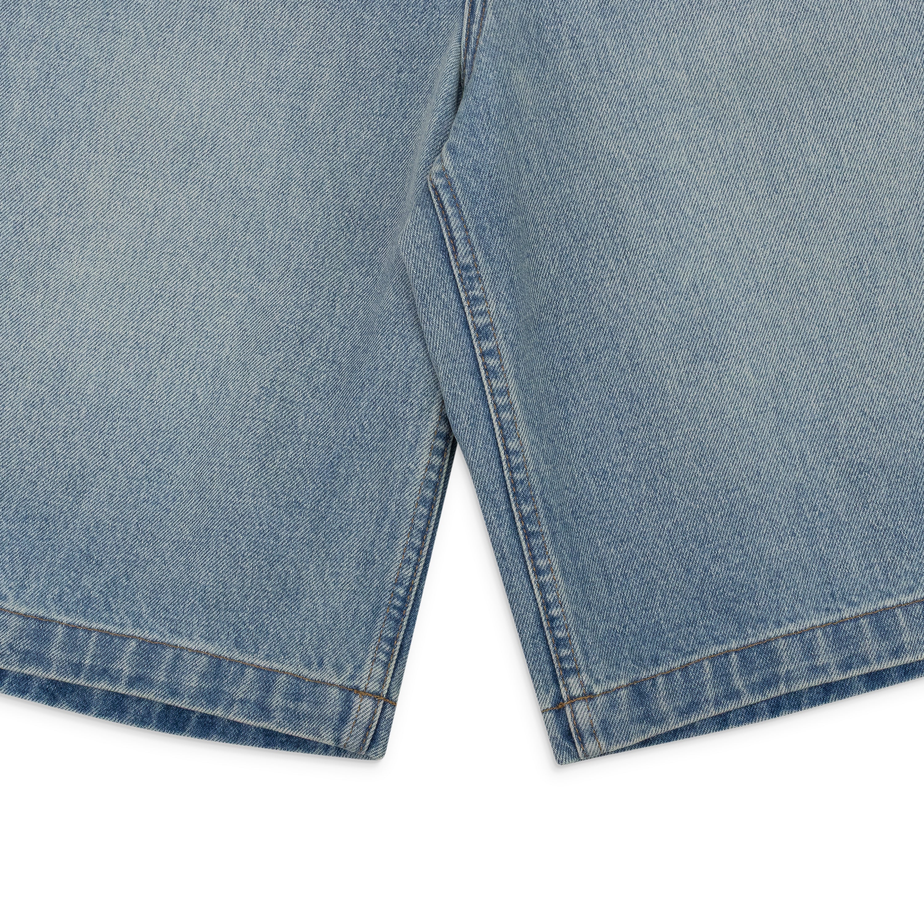 INDIGO DROP CROTCH DENIM SHORTS