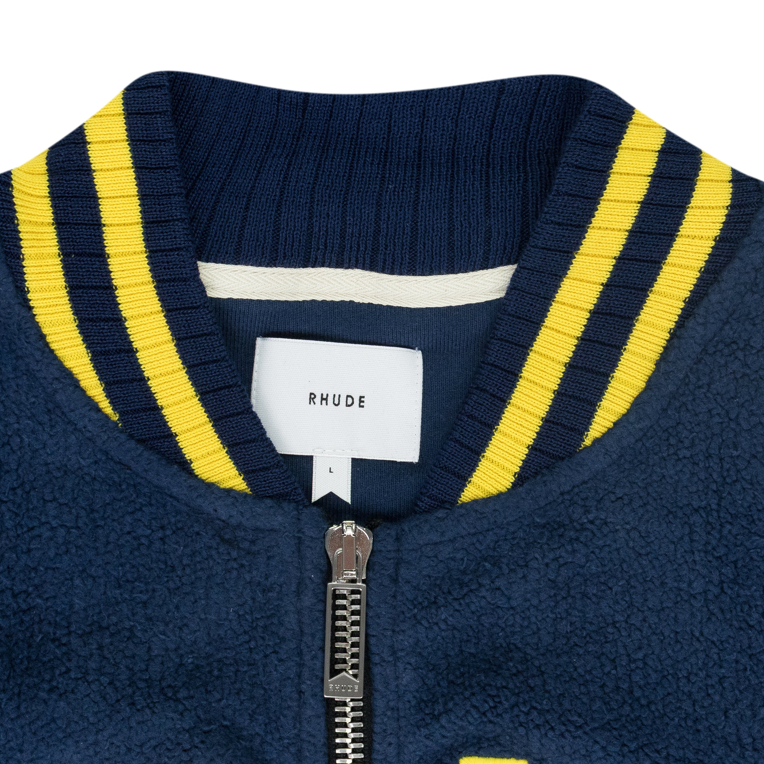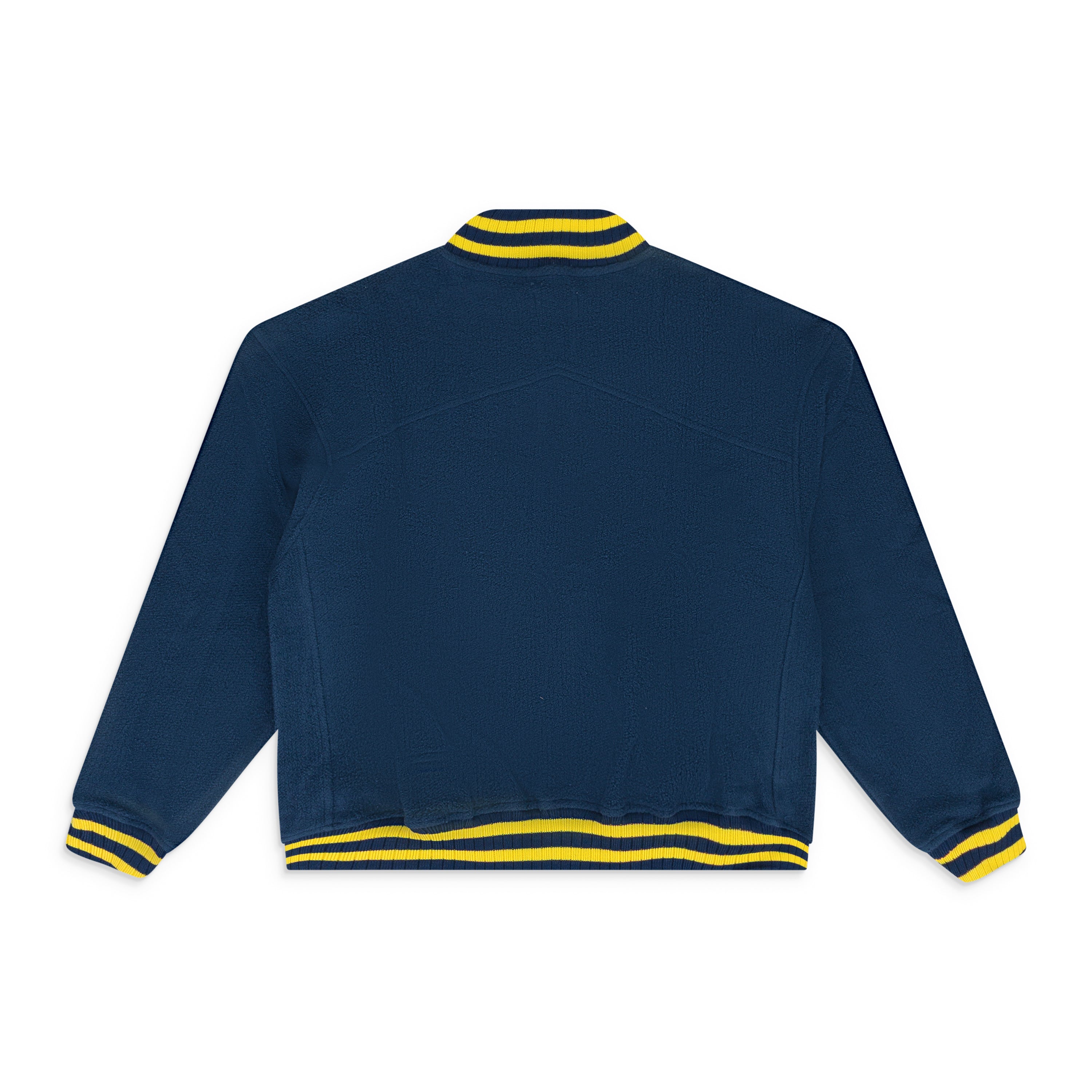 NAVY OVERSIZED LOGO TERRY VARSITY JACKET