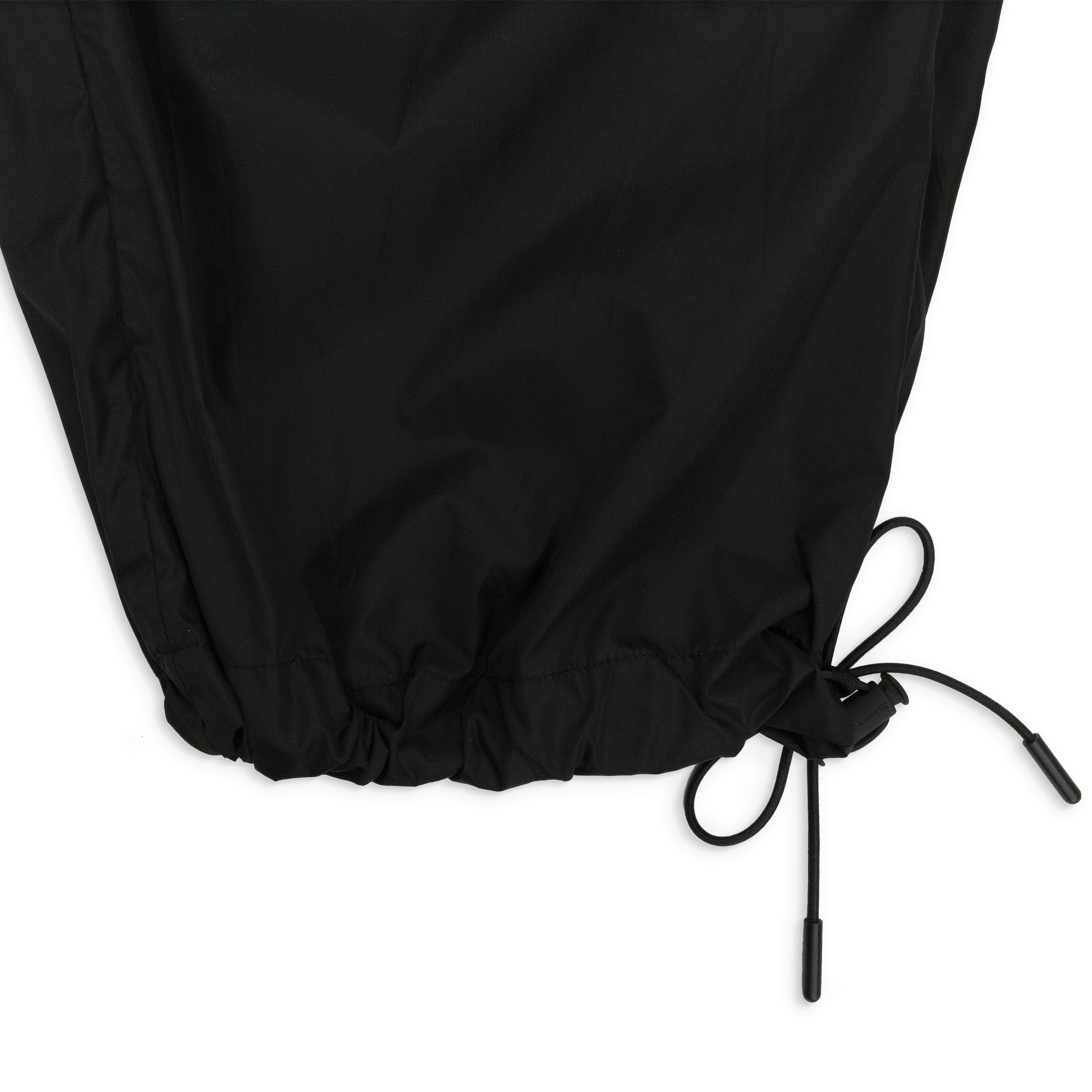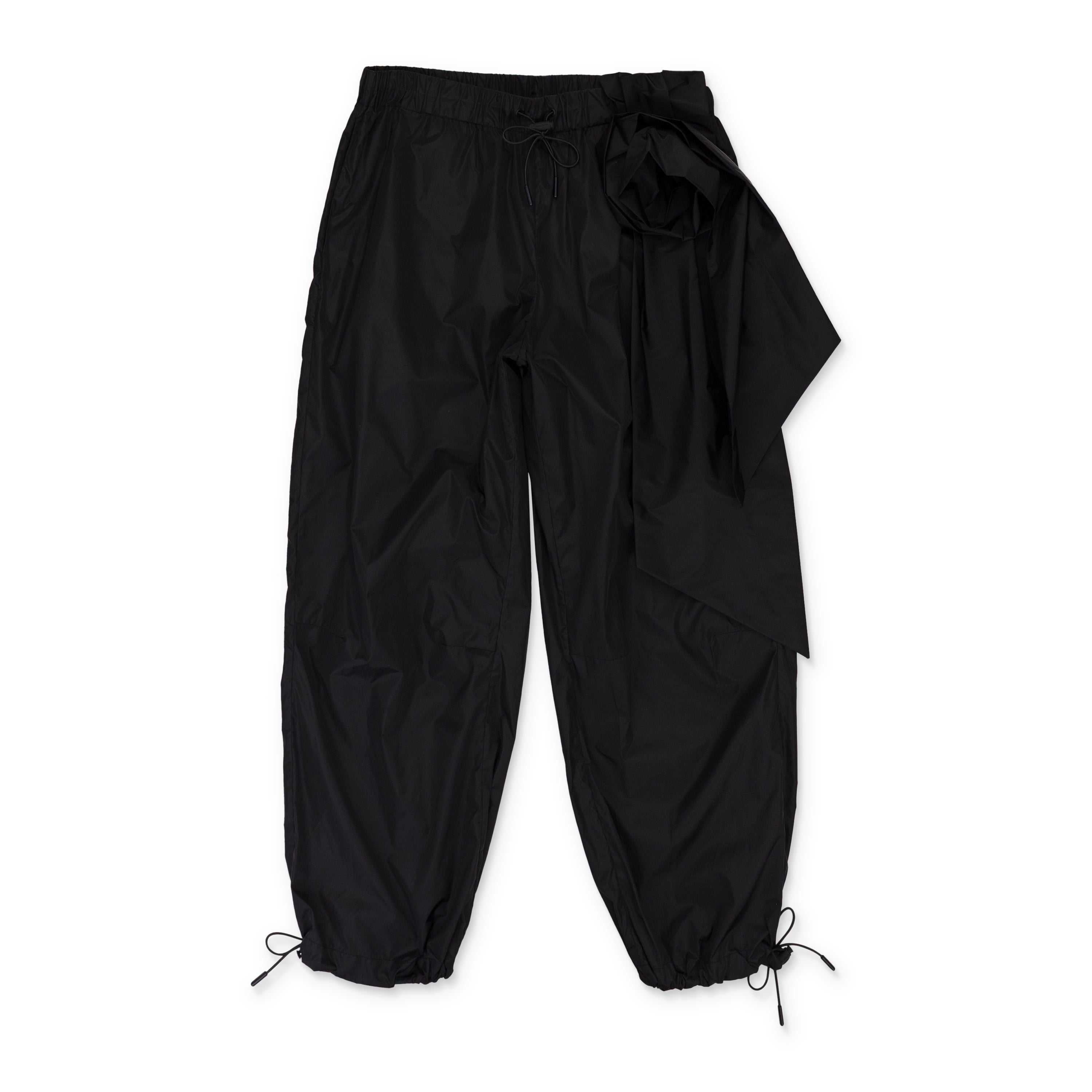 BLACK TECH NYLON WITH ANKLE GATHERING AND PRESSED ROSE TRACK TROUSERS