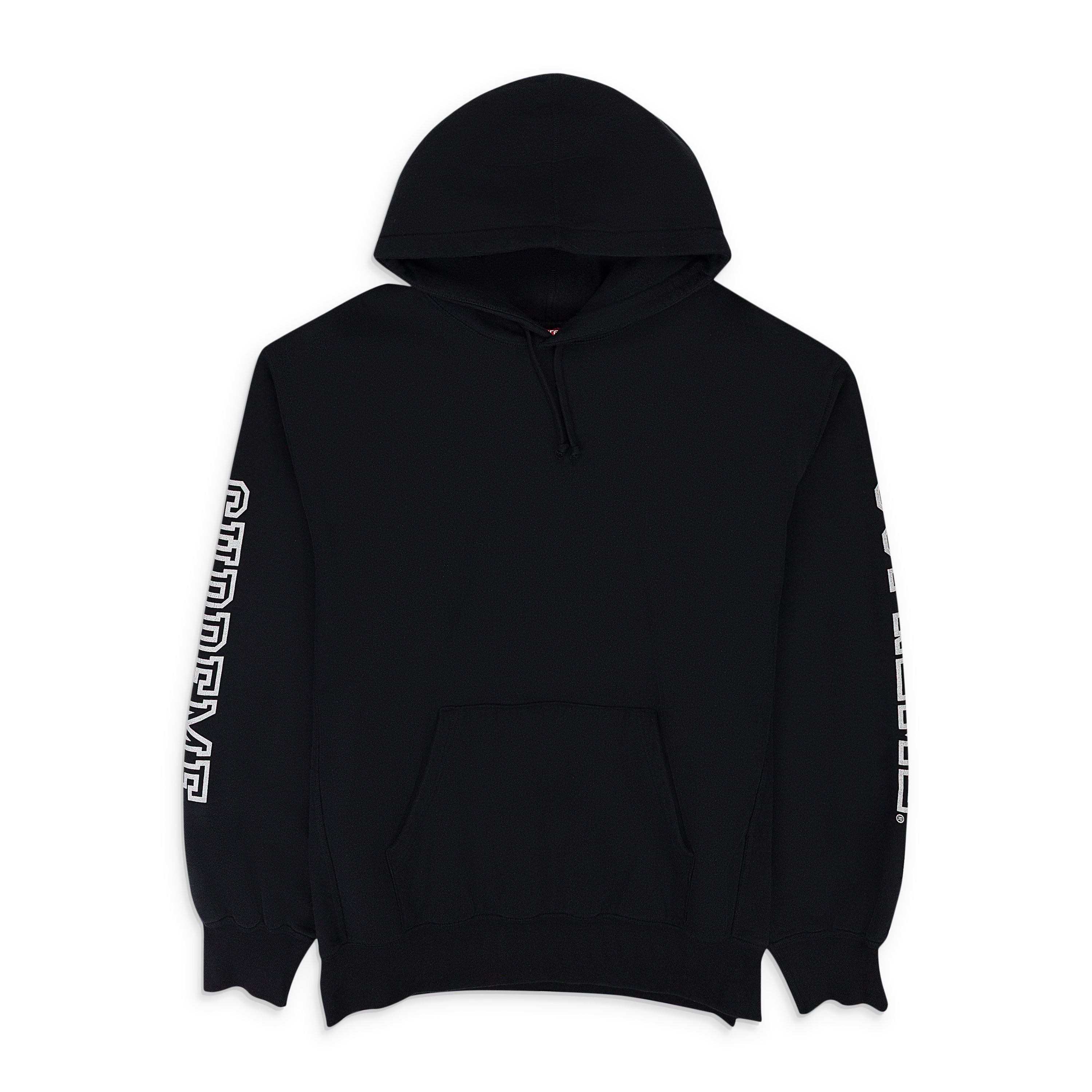 BLACK STACKED VARSITY HOODIE