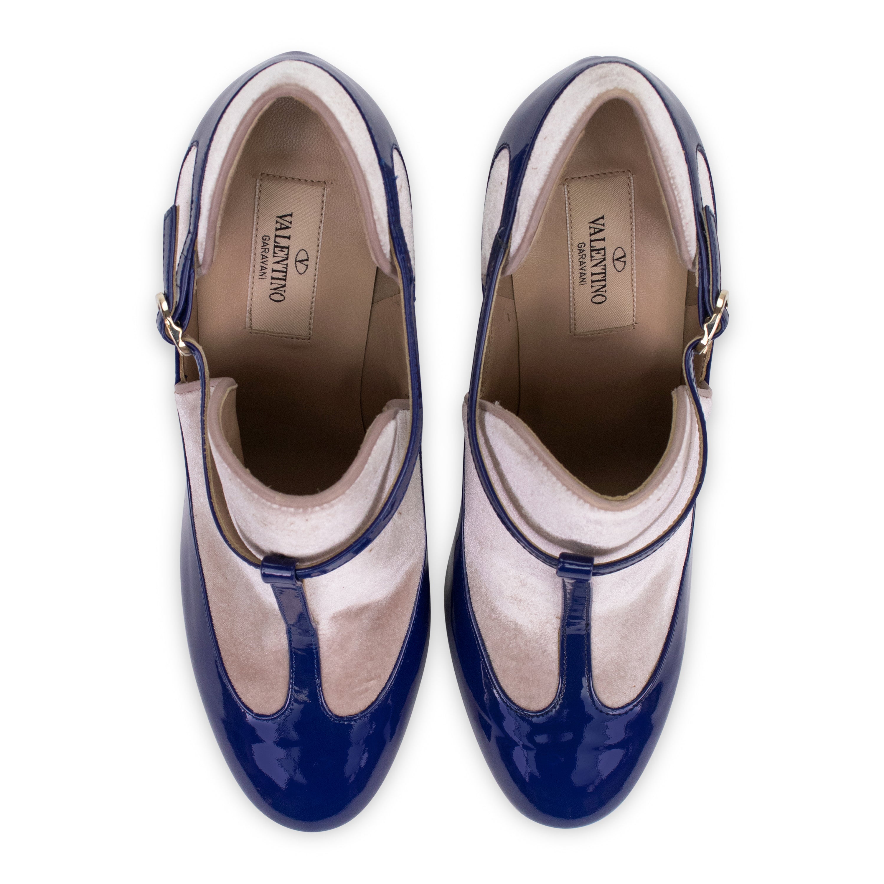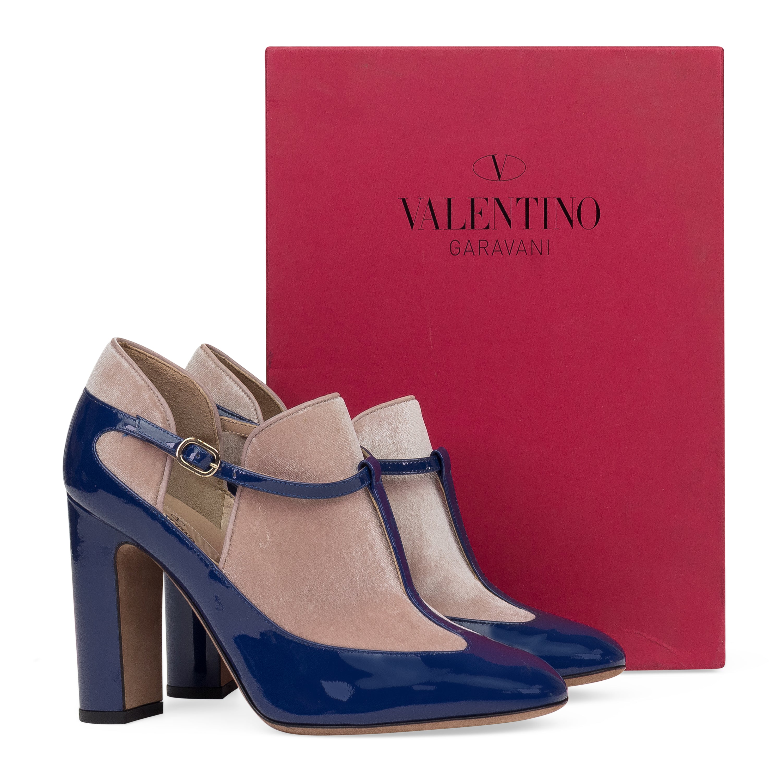 Blue Velvet Ankle Strap Heels