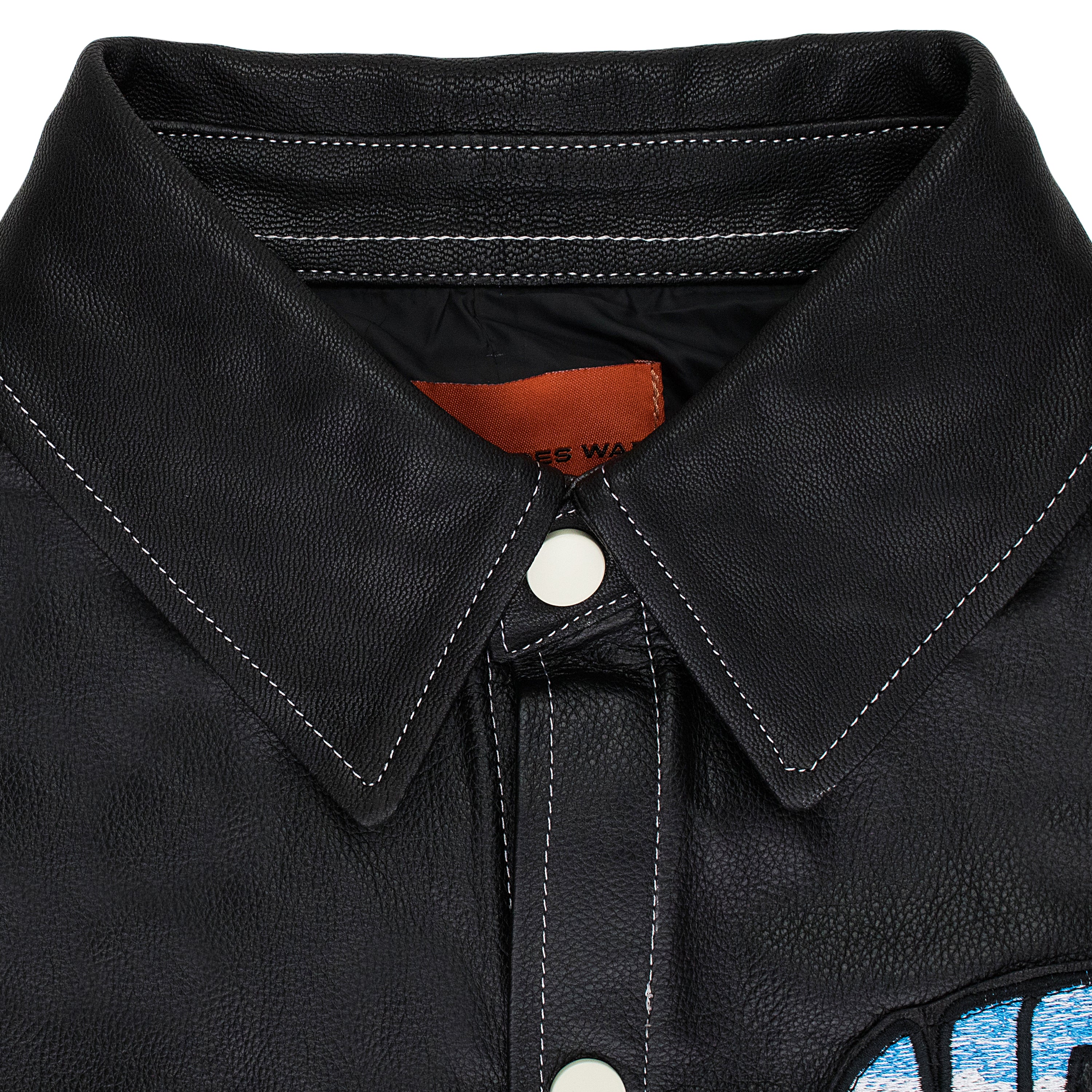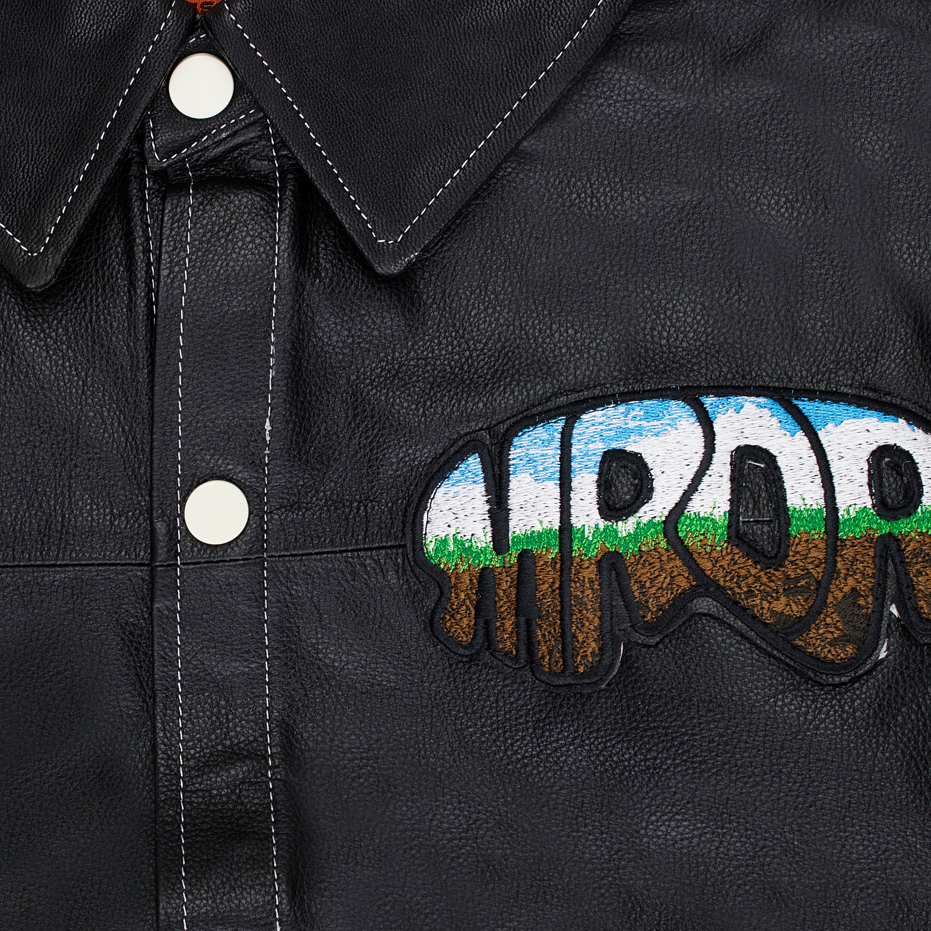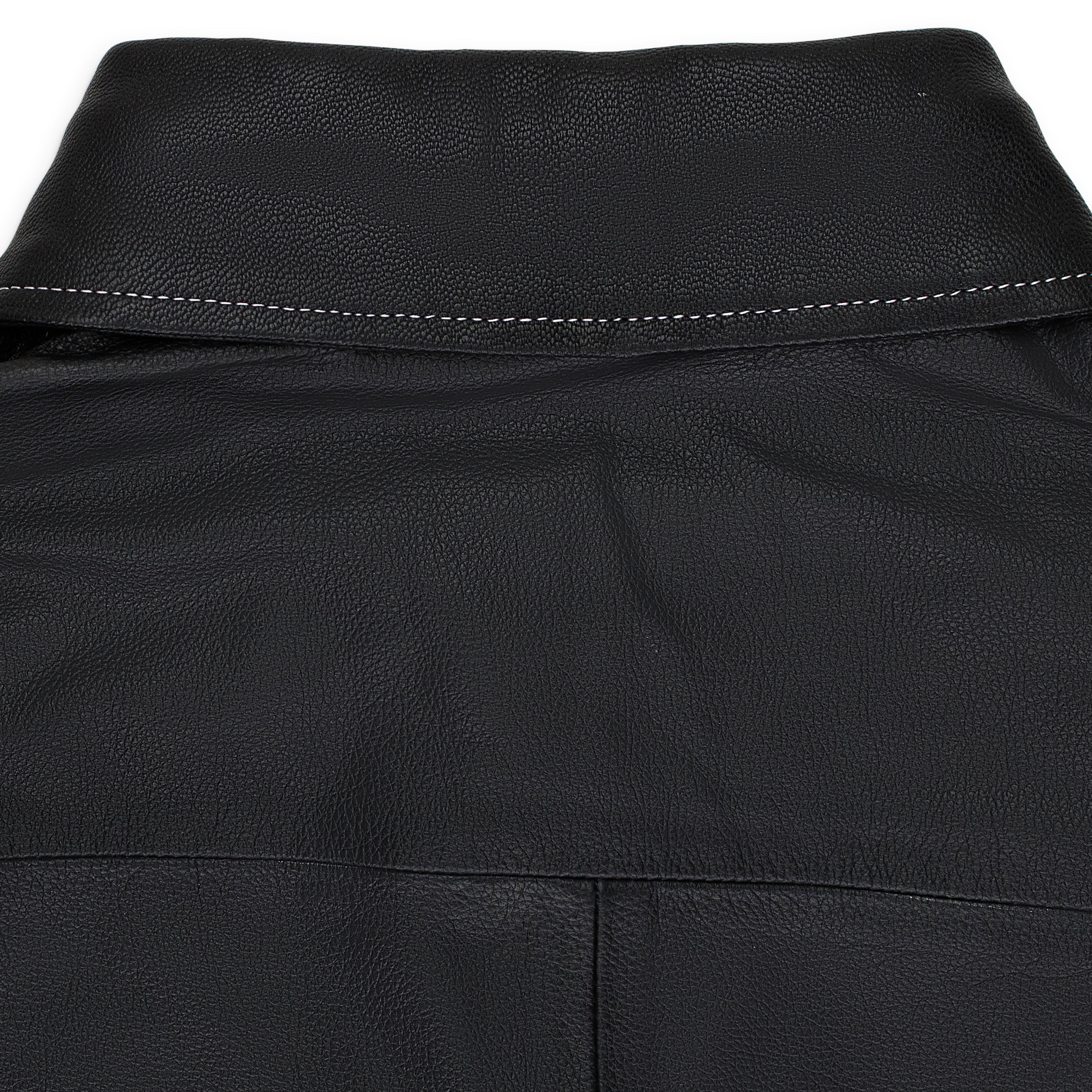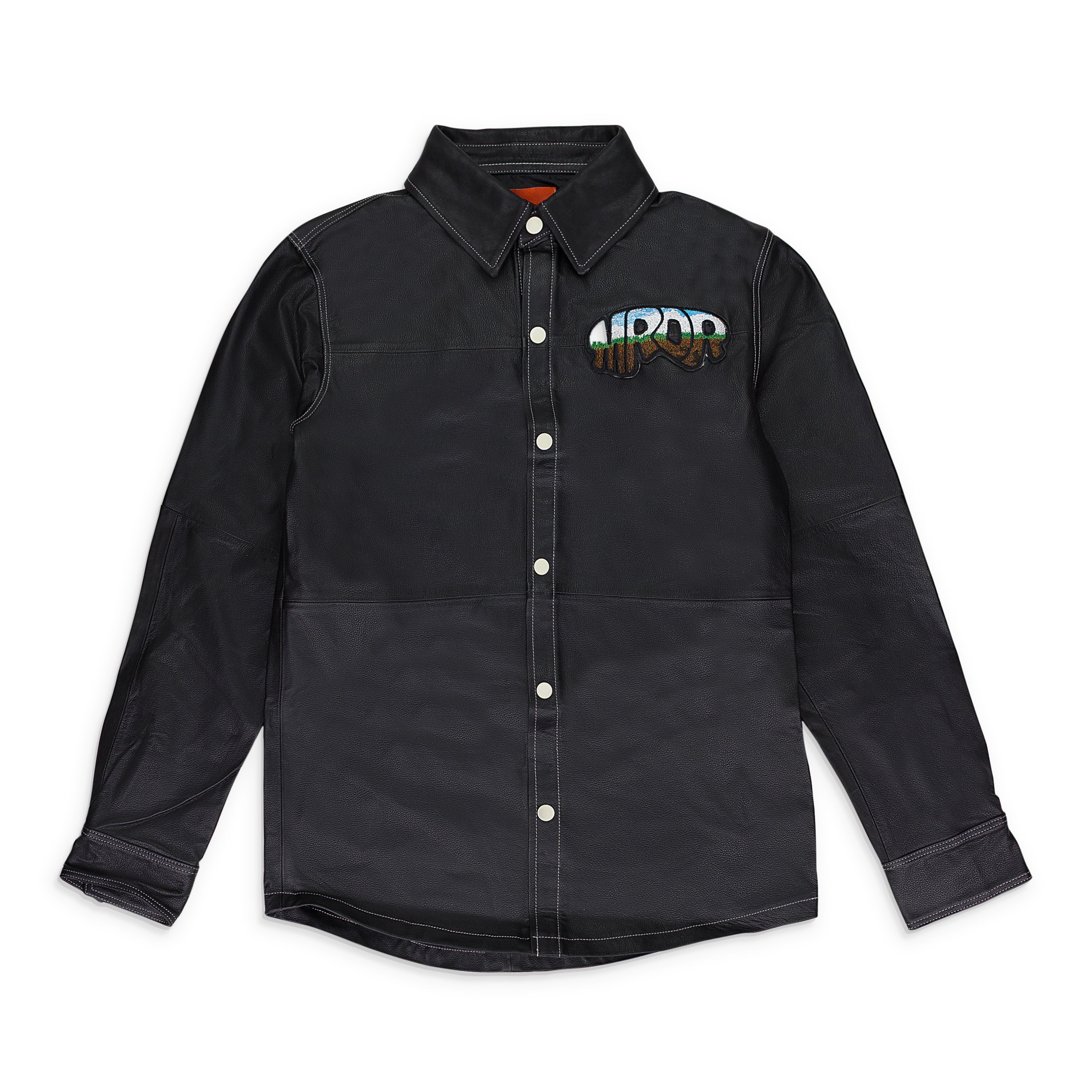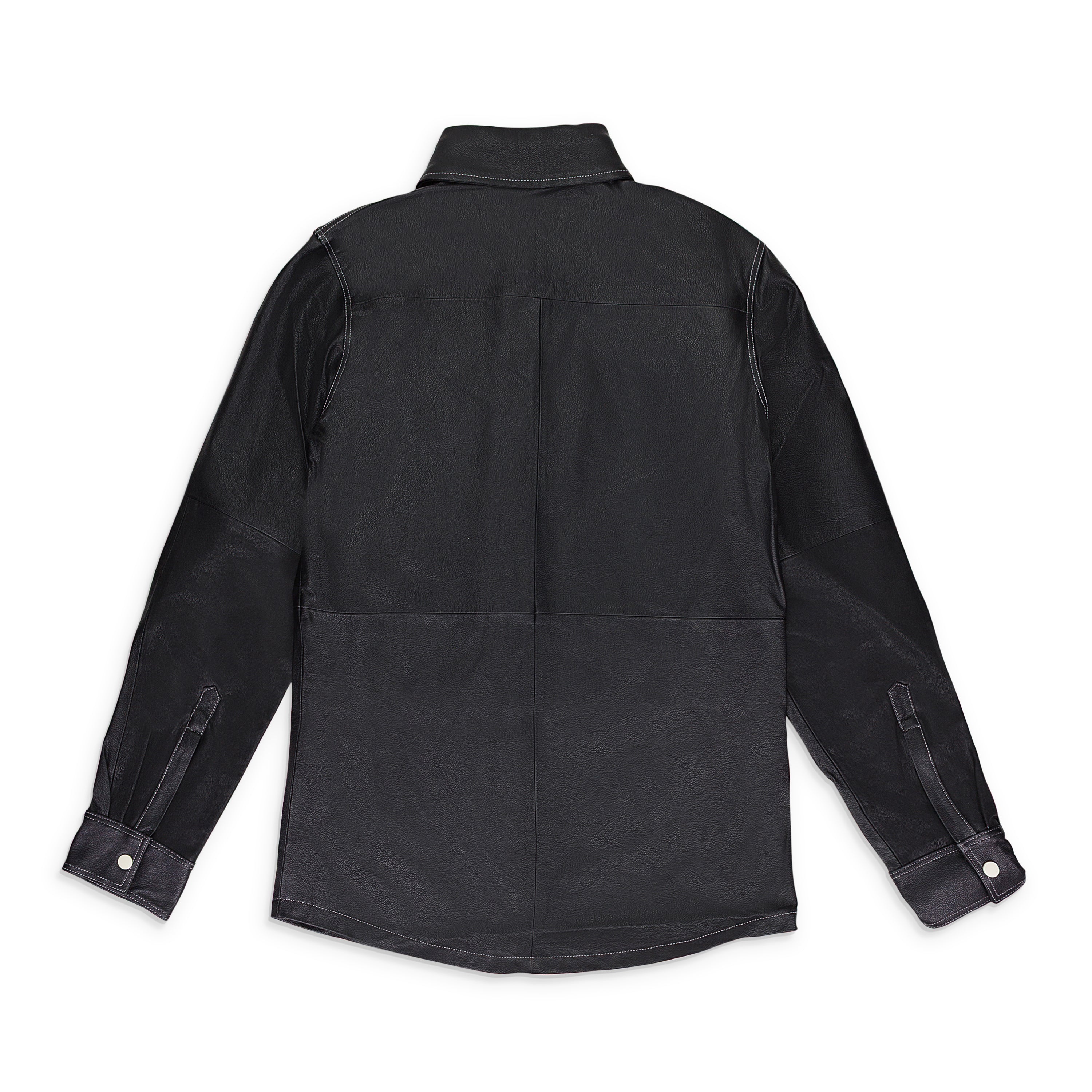 BLACK LEATHER WORK BUTTON-DOWN SHIRT