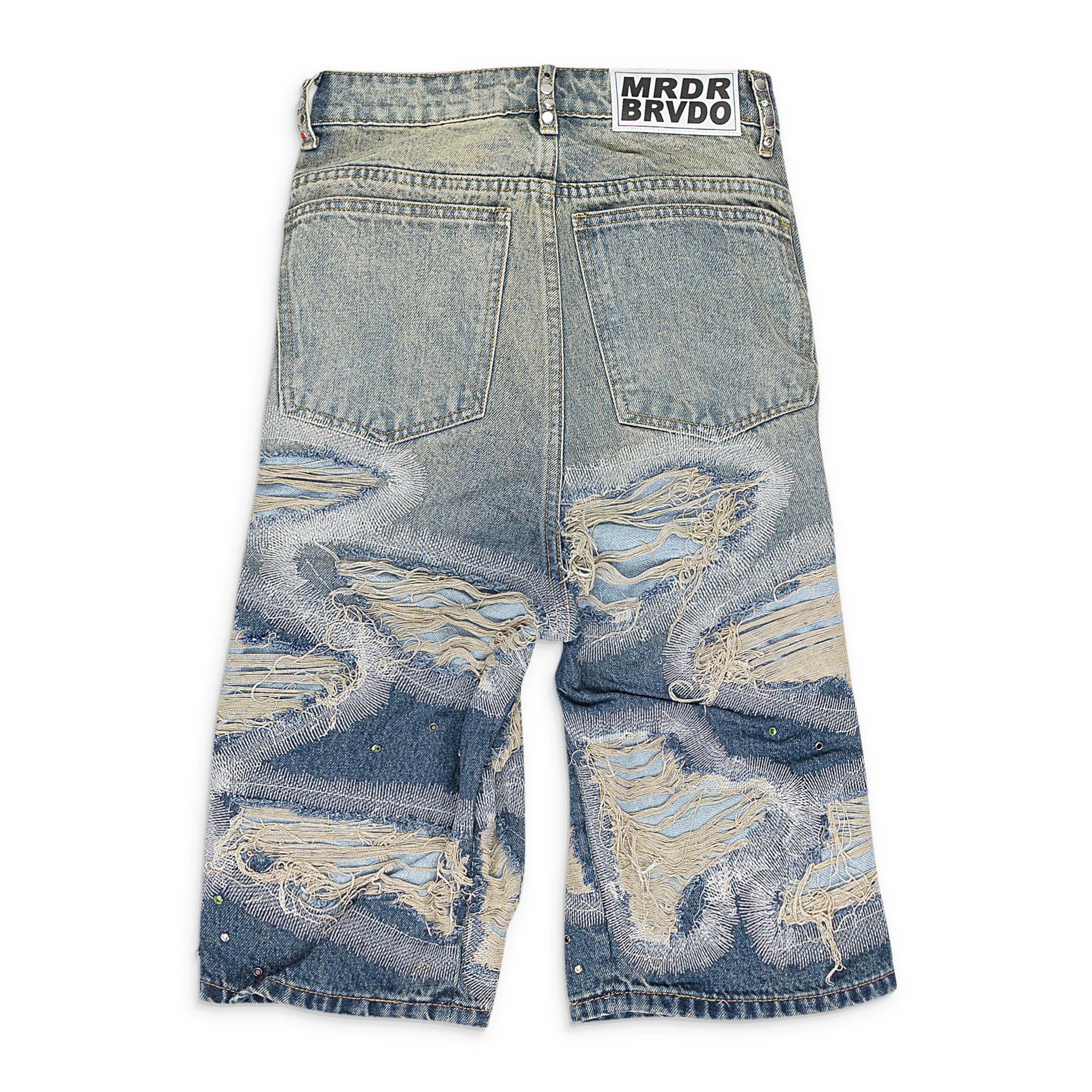 BLUE CHROME STUD EMBROIDERED SHORTS