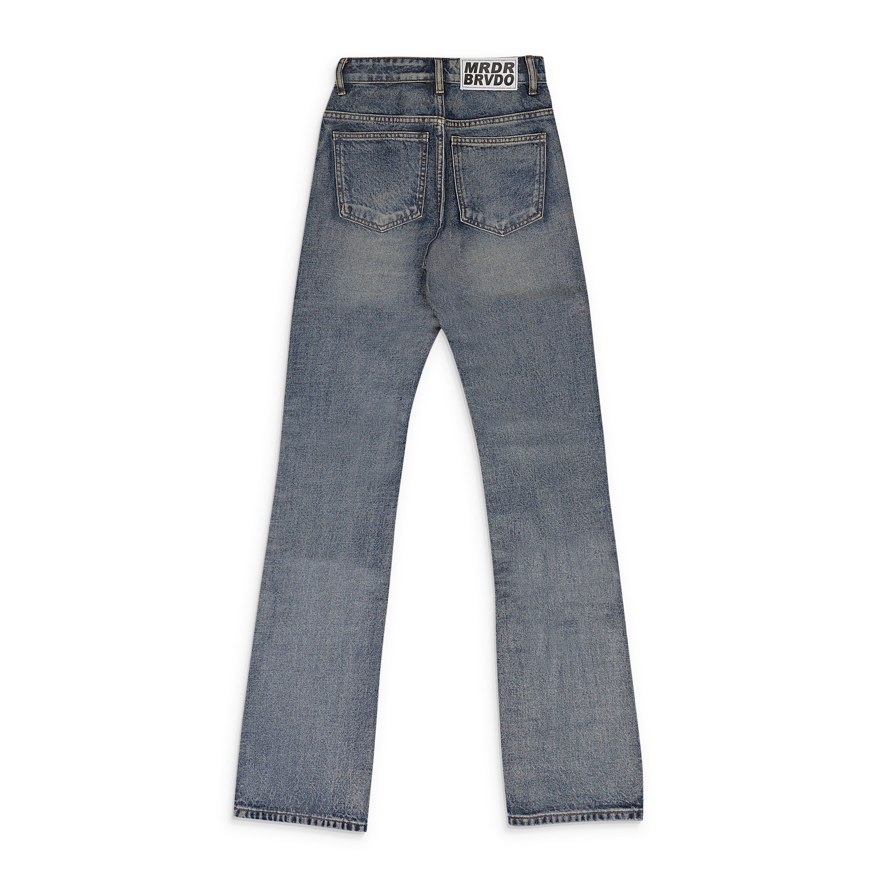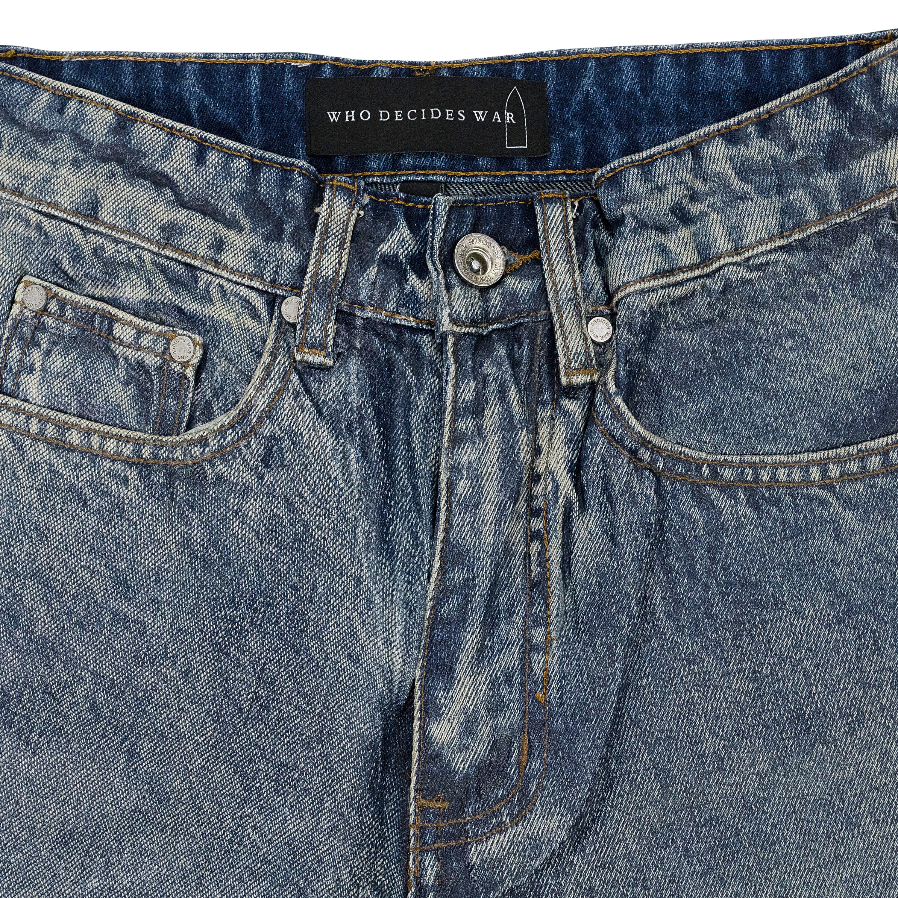 INDIGO WAXED STRAIGHT-FIT JEANS