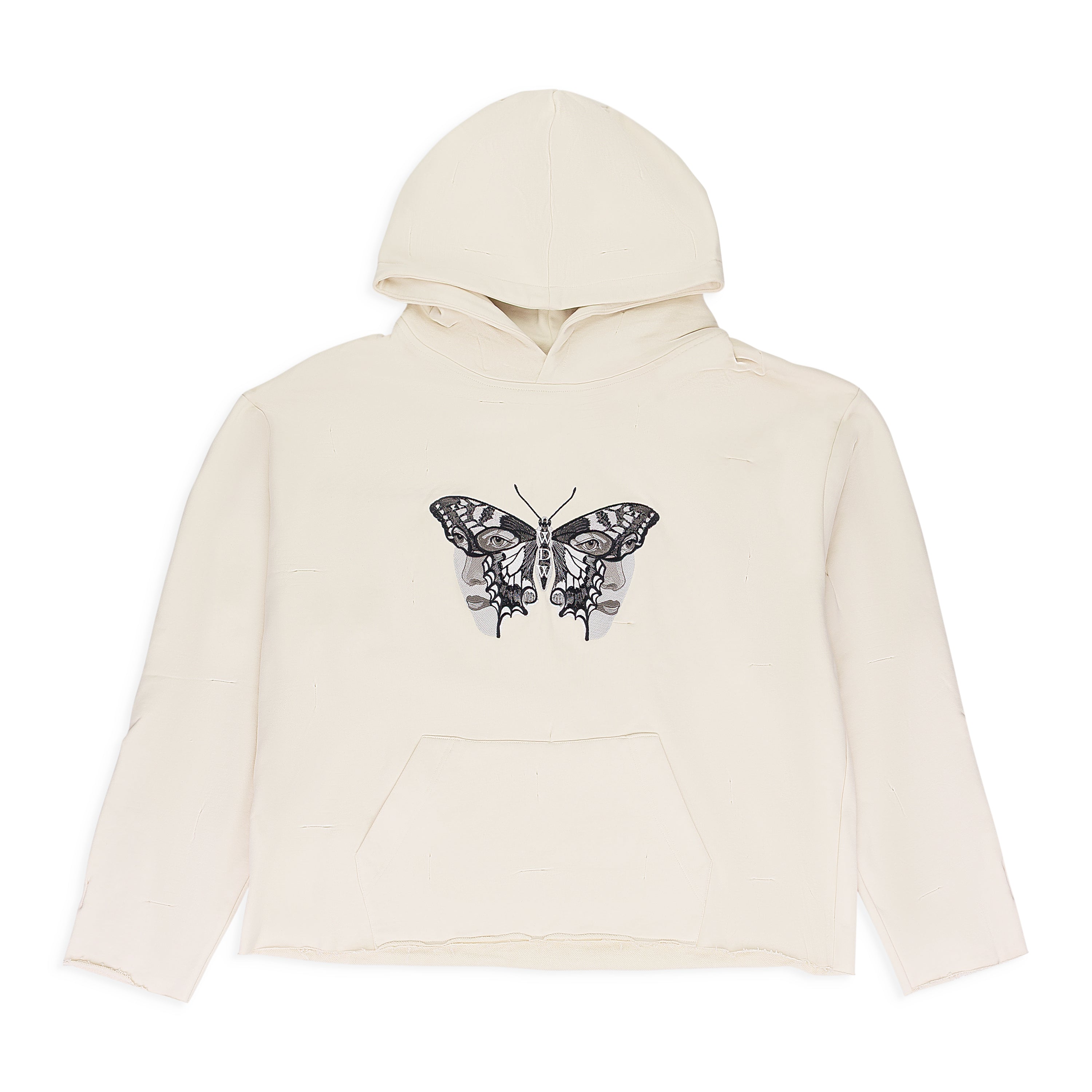 IVORY GATHERED DUOFLY PULLOVER HOODIE
